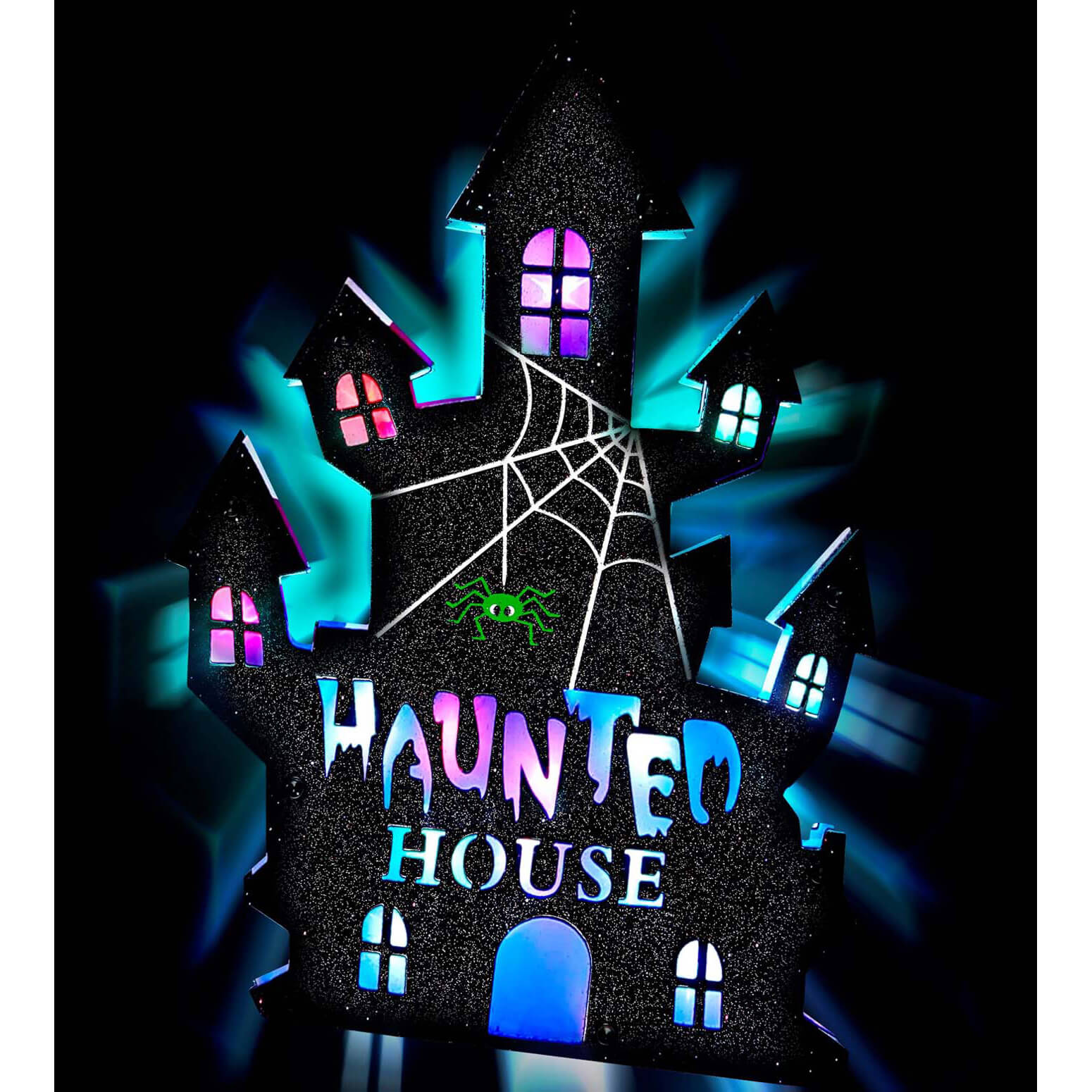 Gruselschloss Deko Wandbild mit LED mit Glitzer und bunten Lichtern 35x24cm HAUMTED HOUSE bunt