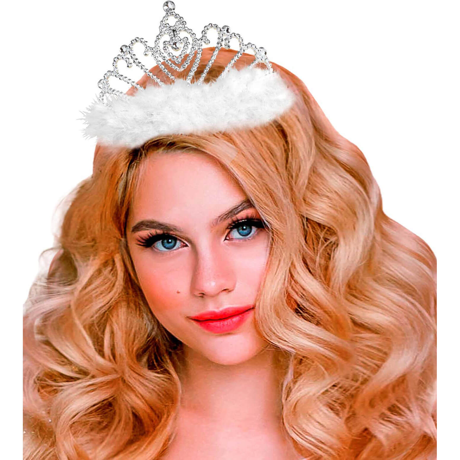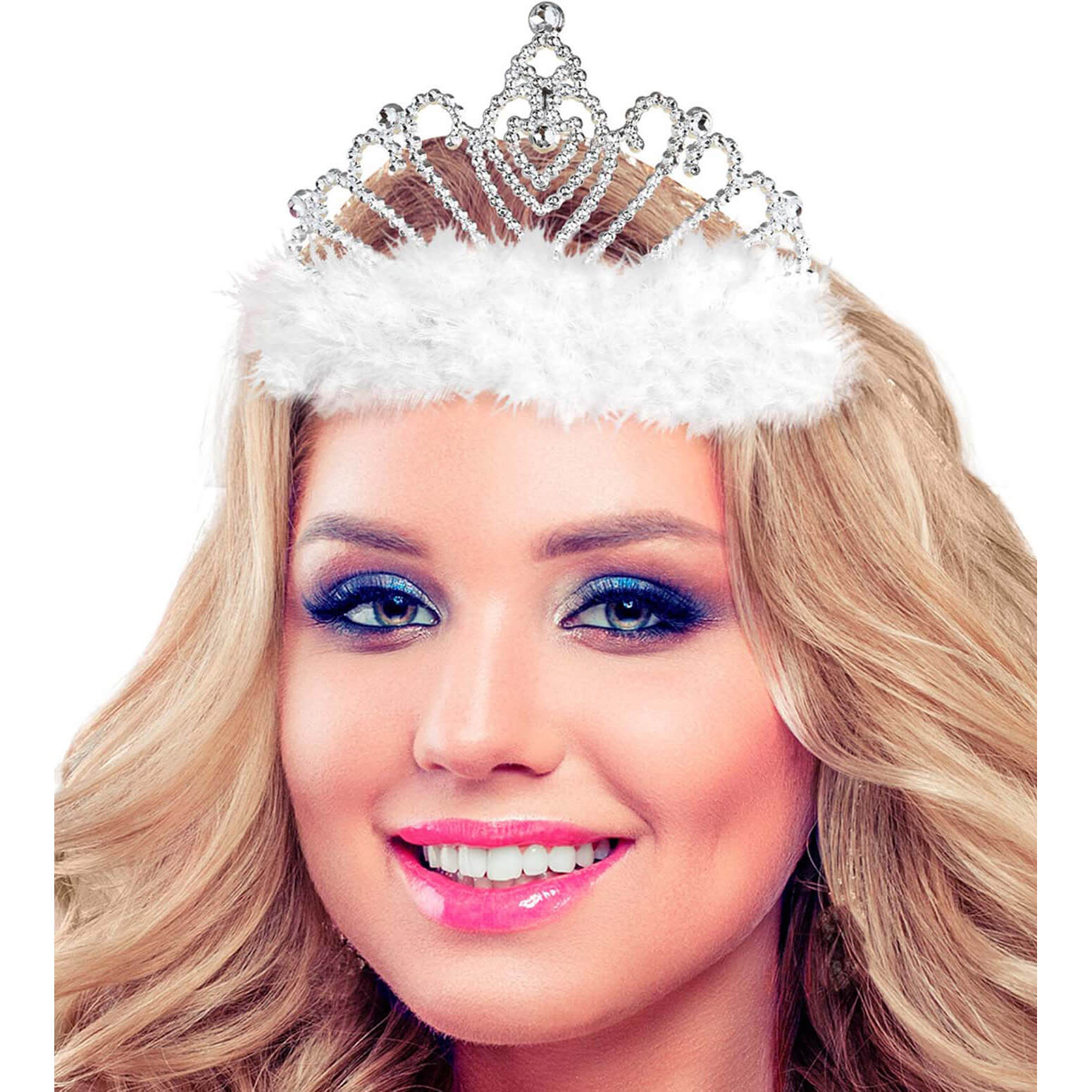 Prinzessin Edeldame Krone Diadem aus Kunststoff mit Marabu silber-weiß – (ARTIKEL/REFERNZ: 8003558886623/WI88662 – Kategorie/Suche: – Hersteller: Widmann S.r.l.)