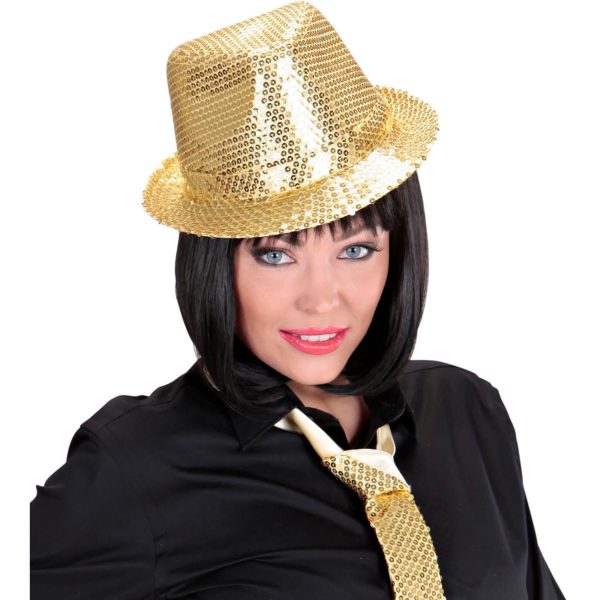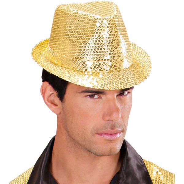 Trilbyhut schmale Krempe mit Pailletten Classic einfarbig gold – (ARTIKEL/REFERNZ: 8003558906703/WI9067D – Kategorie/Suche: Fedora Gangsterhut – Hersteller: Widmann S.r.l.)