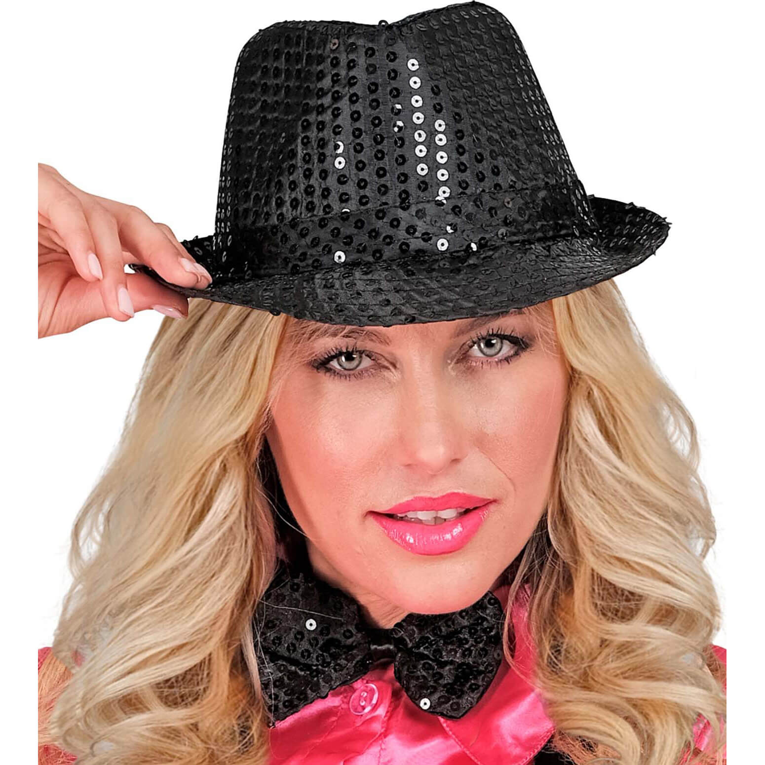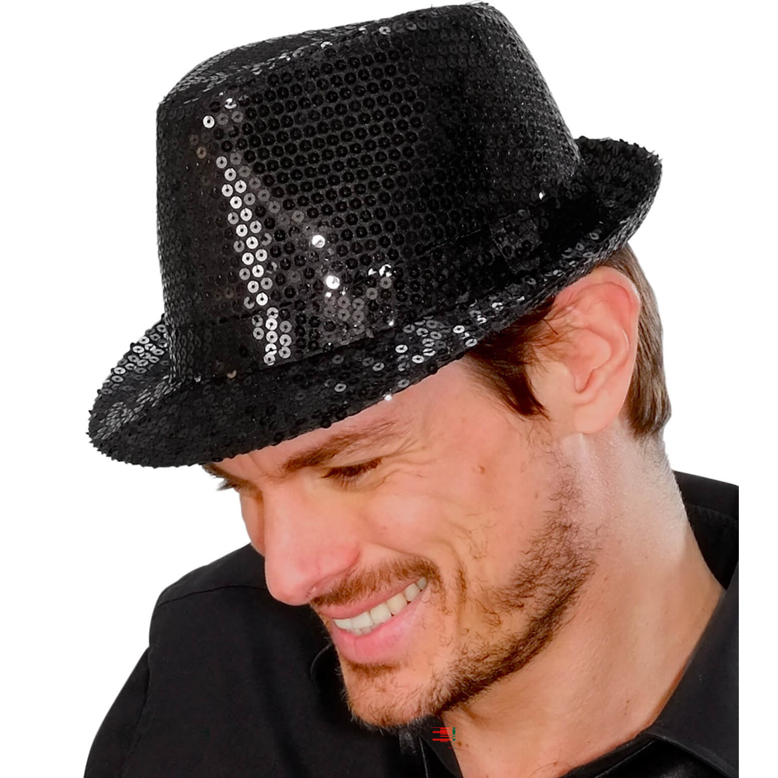 Trilbyhut schmale Krempe mit Pailletten Classic einfarbig schwarz – (ARTIKEL/REFERNZ: 8003558906901/WI9069N – Kategorie/Suche: Fedora Gangsterhut – Hersteller: Widmann S.r.l.)