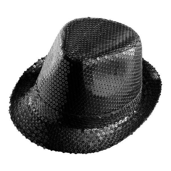 Trilbyhut schmale Krempe mit Pailletten Classic einfarbig schwarz
