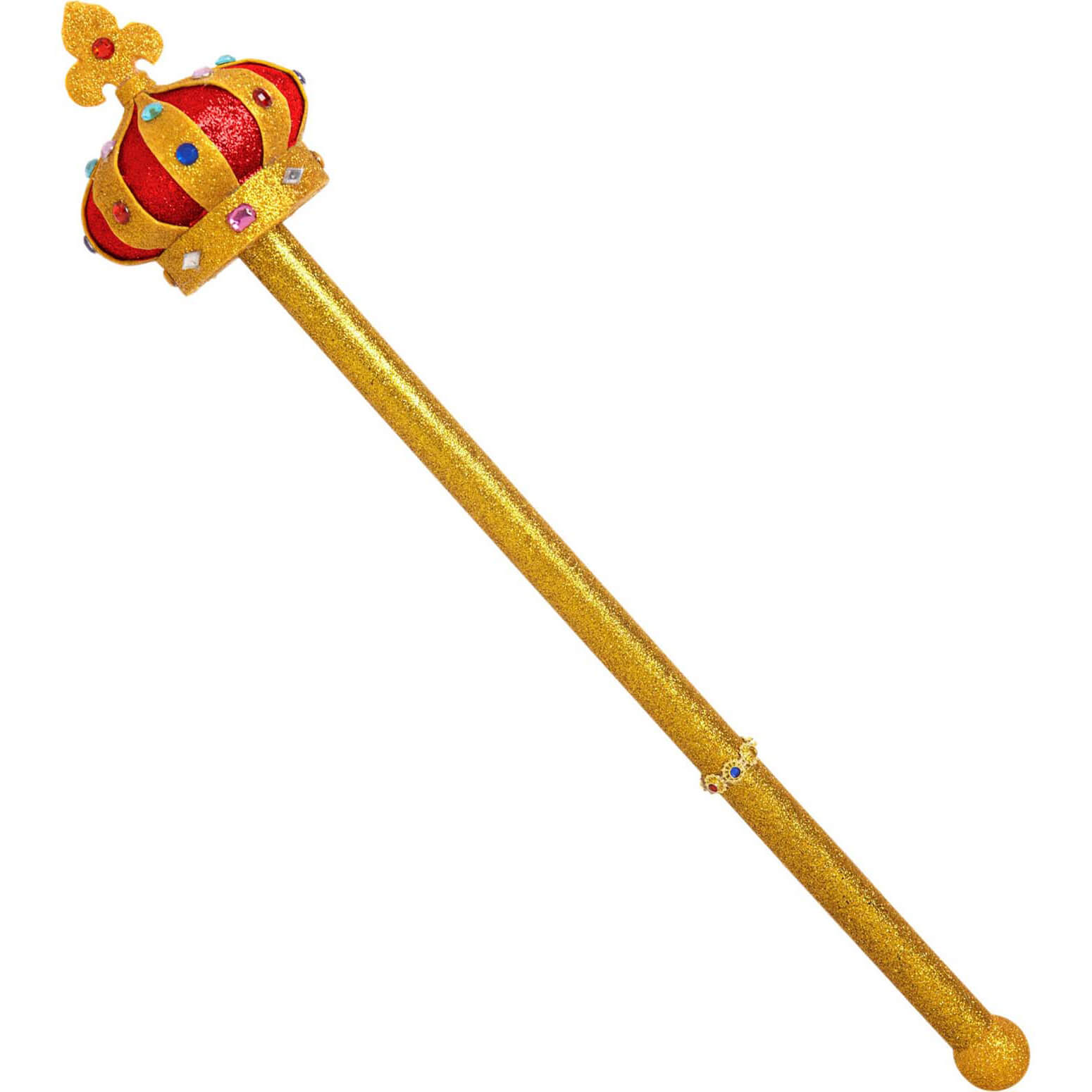 Königinnen Königs Zepter aus Kunststoff mit Glitzer Deluxe gold-rot