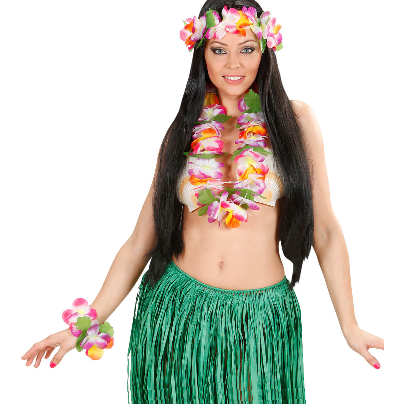 Hawaii/Blumen Halskette+Armband+Stirnband Set Hawaiikette Lei MAUI lila-gelb – (ARTIKEL/REFERNZ: 8003558913602/WI9136W – Kategorie/Suche: – Hersteller: Widmann S.r.l.)