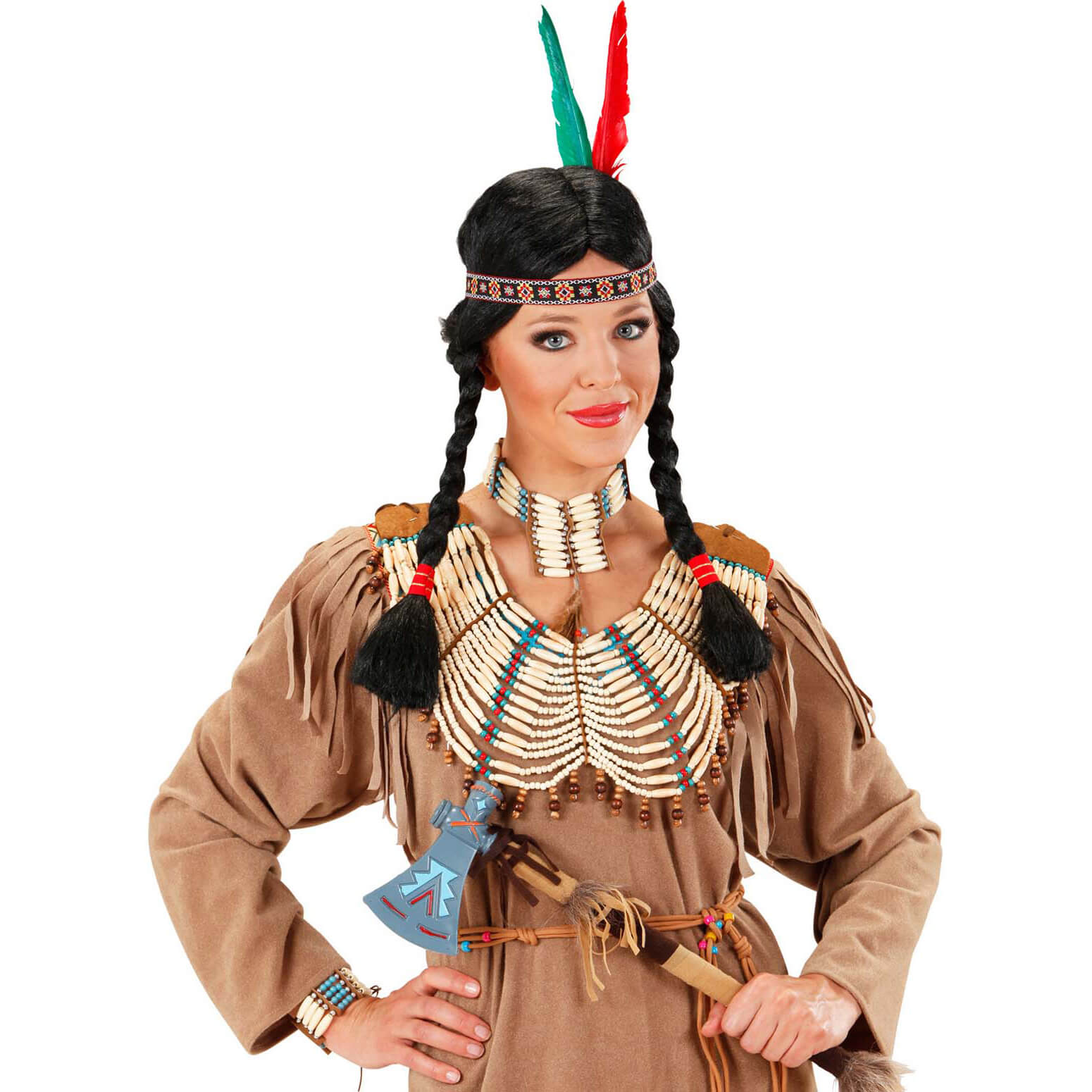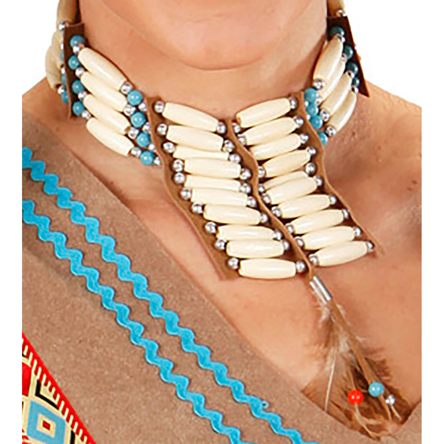 Hippie/Indianer Halsband Halskette aus Perlen Röhrenknochen und Leder Optik türkis beige-braun – (ARTIKEL/REFERNZ: 8003558940806/WI9408K – Kategorie/Suche: – Hersteller: Widmann S.r.l.)