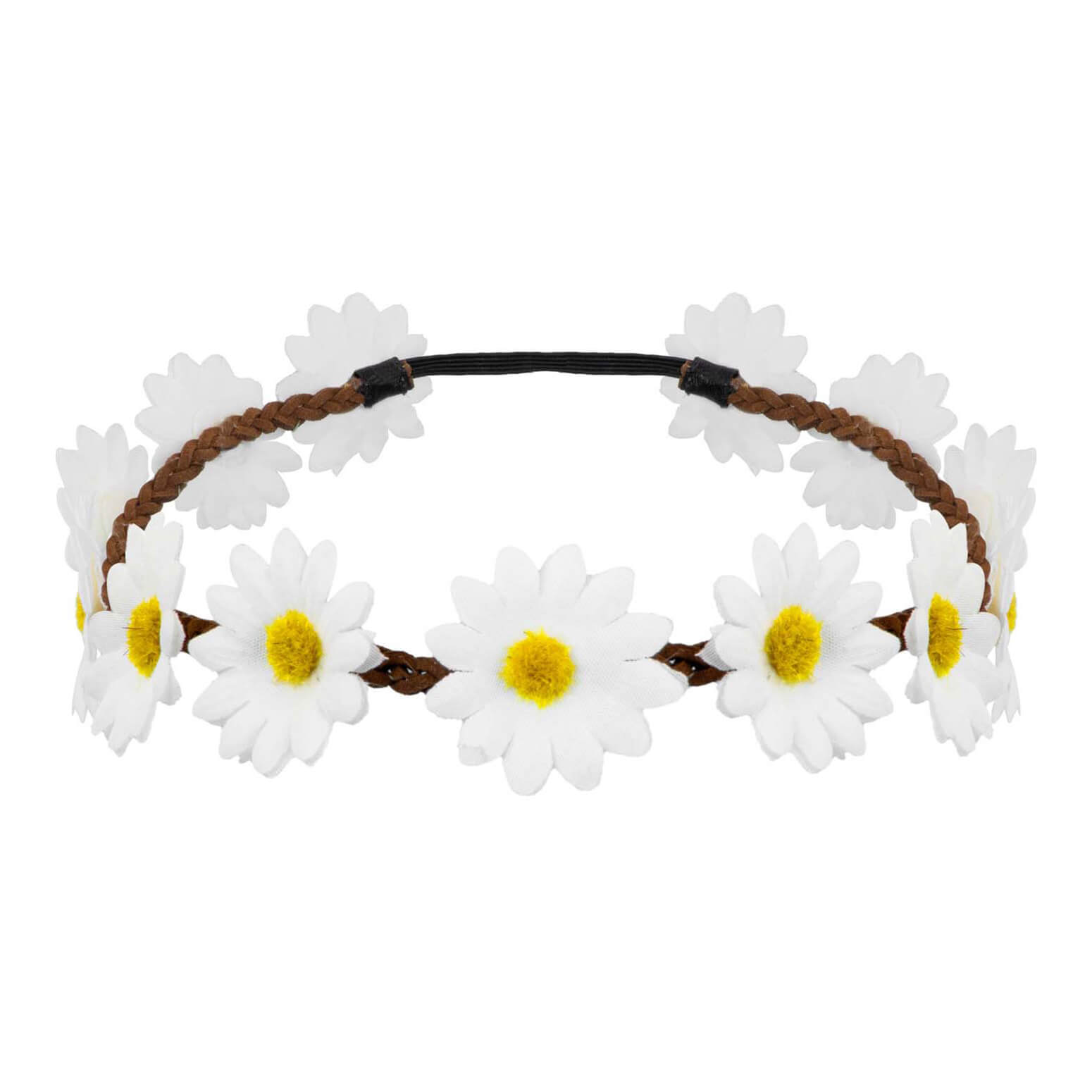 Blumen Margeriten Haarkranz Blumenkranz Stirnband Haarband mit Gänseblümchen Blüten weiß-braun