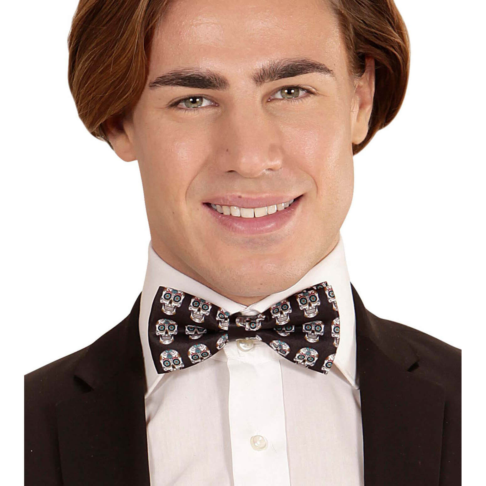 Schädel bunt D.d.l.M. Motivfliege aus Satin mit einstellbarem Band schwarz-weiß – (ARTIKEL/REFERNZ: 8003558956937/WI95693 – Kategorie/Suche: Dia de los Muertos Catrina Tag der Toten – Hersteller: Widmann S.r.l.)
