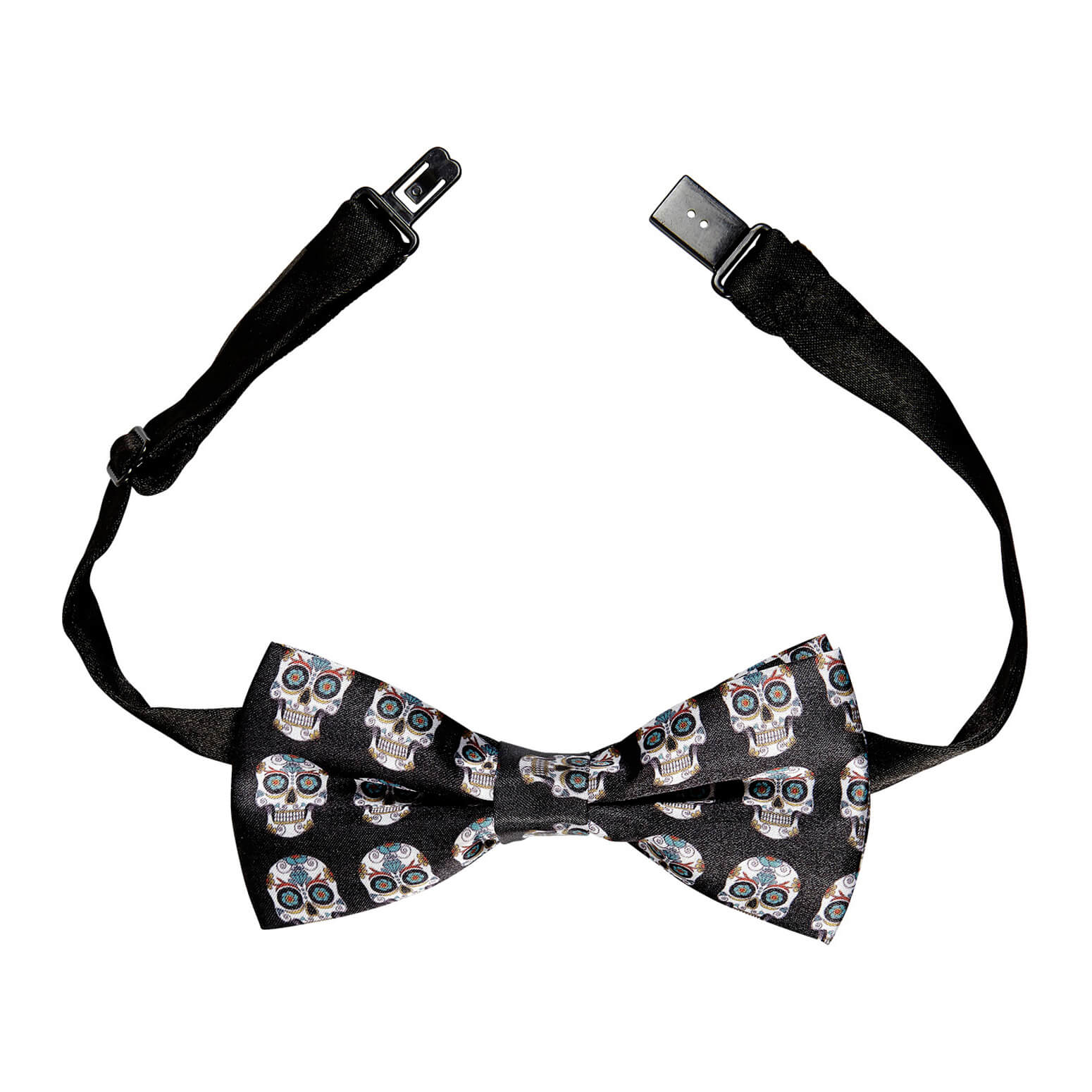 Schädel bunt D.d.l.M. Motivfliege aus Satin mit einstellbarem Band schwarz-weiß