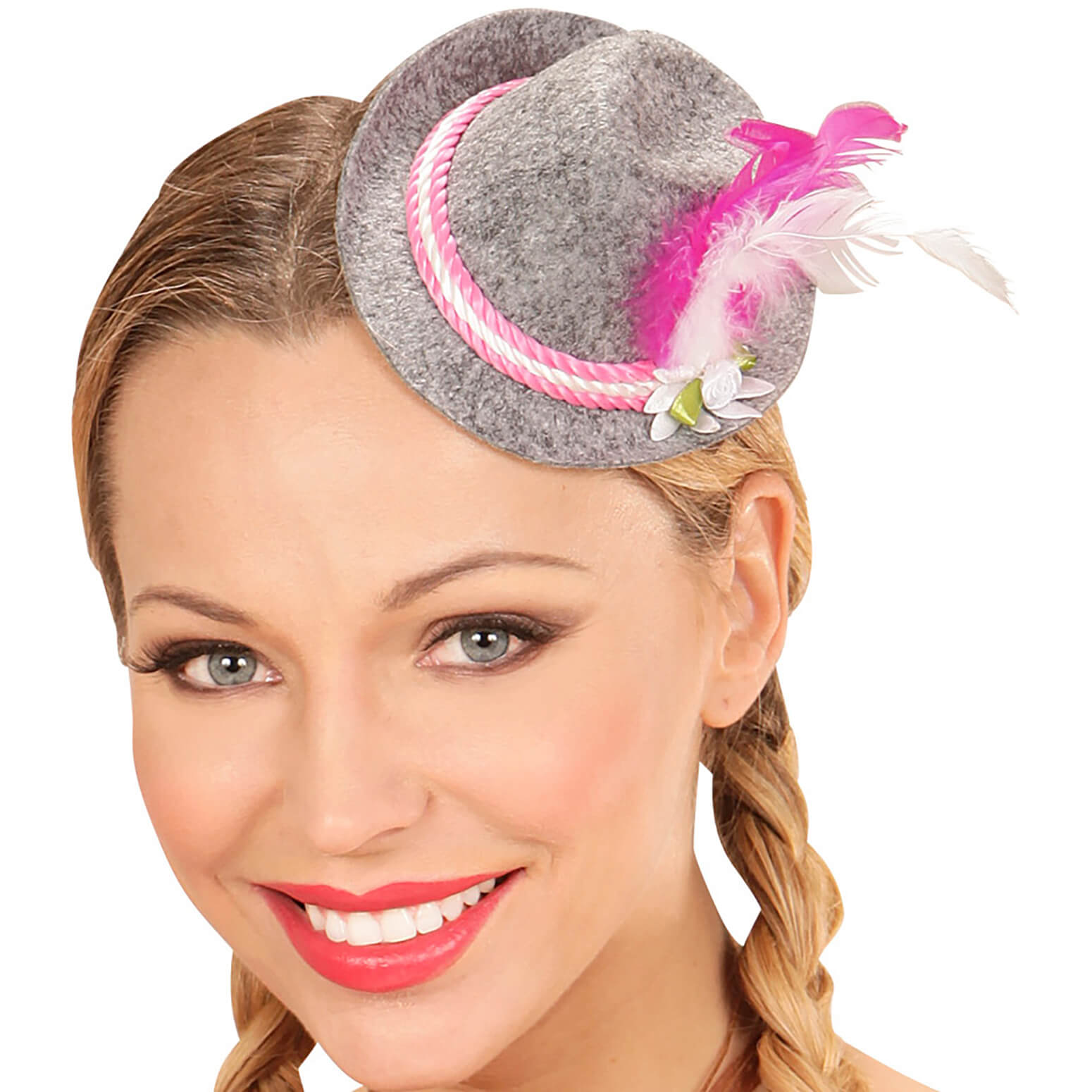 Trachten Minihut mit Haarclip Federn Edelweiß und 3 Zierkordeln grau-pink – (ARTIKEL/REFERNZ: 8003558957101/WI95710 – Kategorie/Suche: Oktoberfest – Hersteller: Widmann S.r.l.)