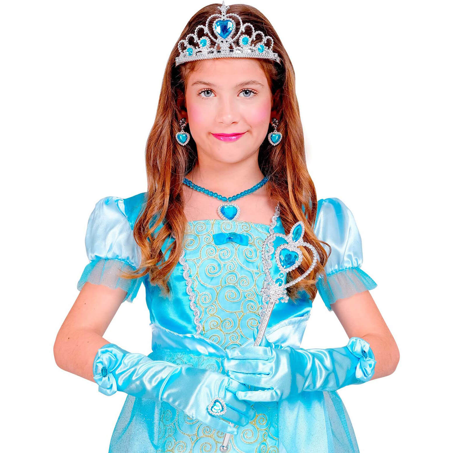 Prinzessin Edeldame Schmuck Set+Handschuhe+Krone+Zepter mit Halsketten+Ohrringen+Ring Diadem silber blau – (ARTIKEL/REFERNZ: 8003558965649/WI96564 – Kategorie/Suche: – Hersteller: Widmann S.r.l.)