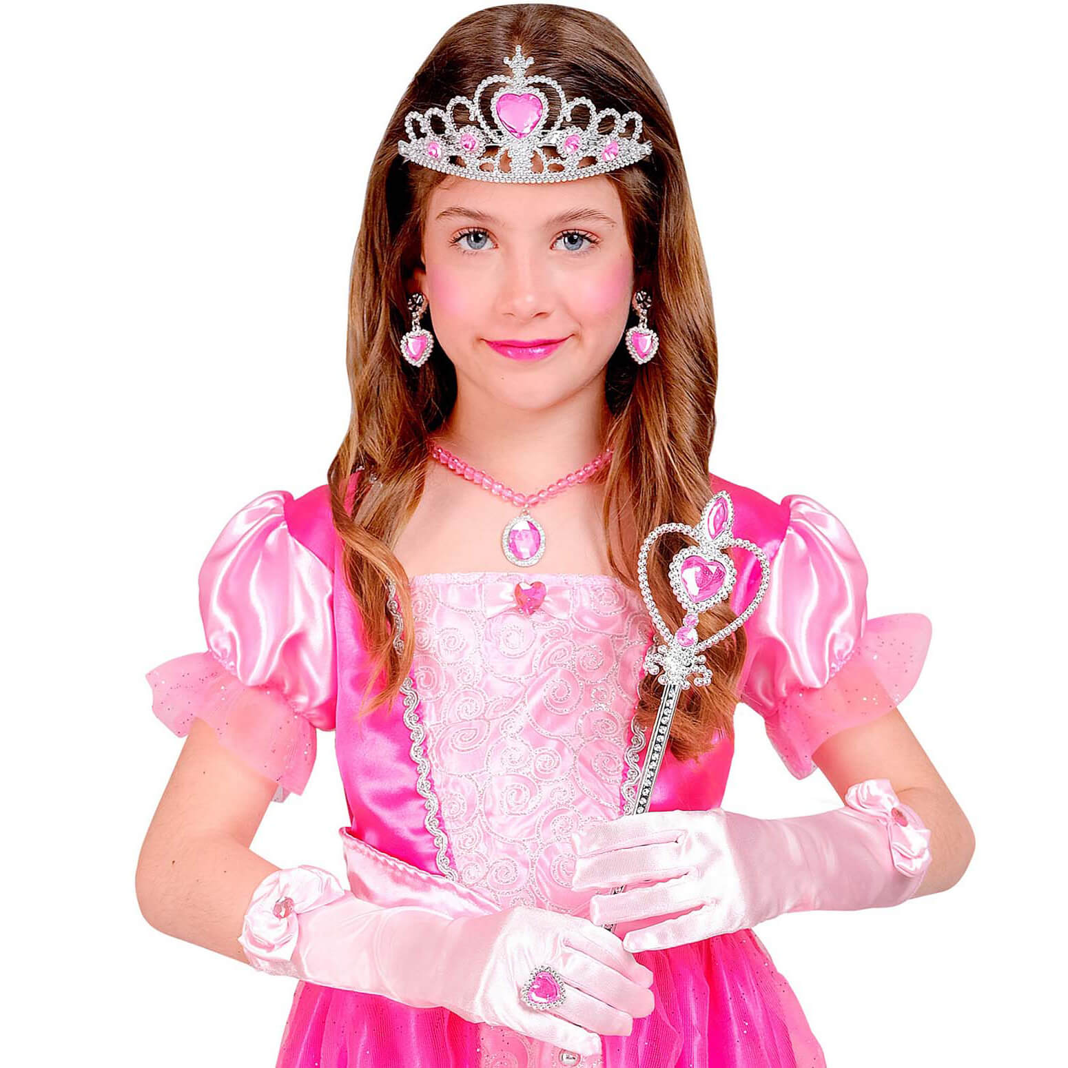Prinzessin Edeldame Schmuck Set+Handschuhe+Krone+Zepter mit Halsketten+Ohrringen+Ring Diadem silber pink – (ARTIKEL/REFERNZ: 8003558965656/WI96565 – Kategorie/Suche: – Hersteller: Widmann S.r.l.)