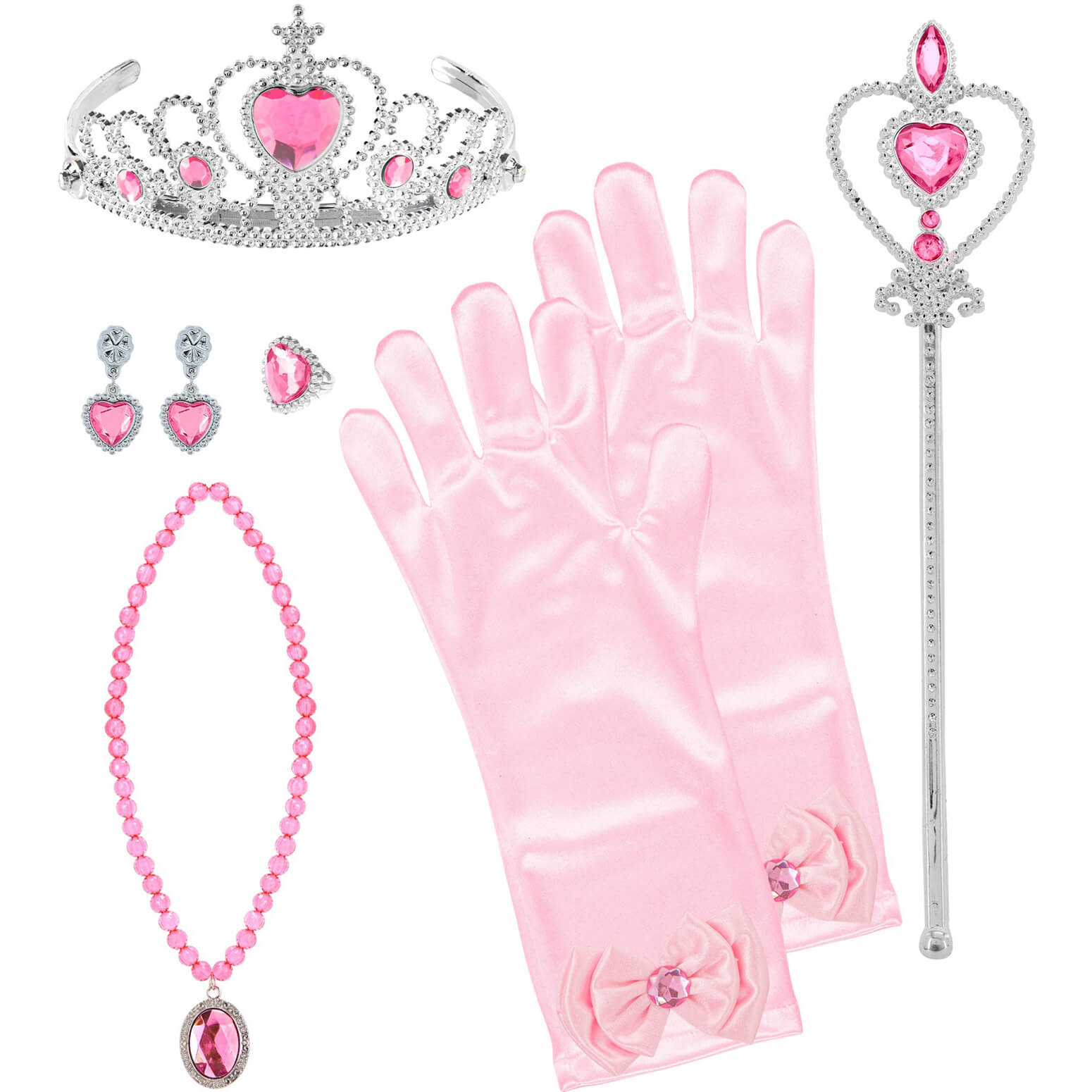 Prinzessin Edeldame Schmuck Set+Handschuhe+Krone+Zepter mit Halsketten+Ohrringen+Ring Diadem silber pink