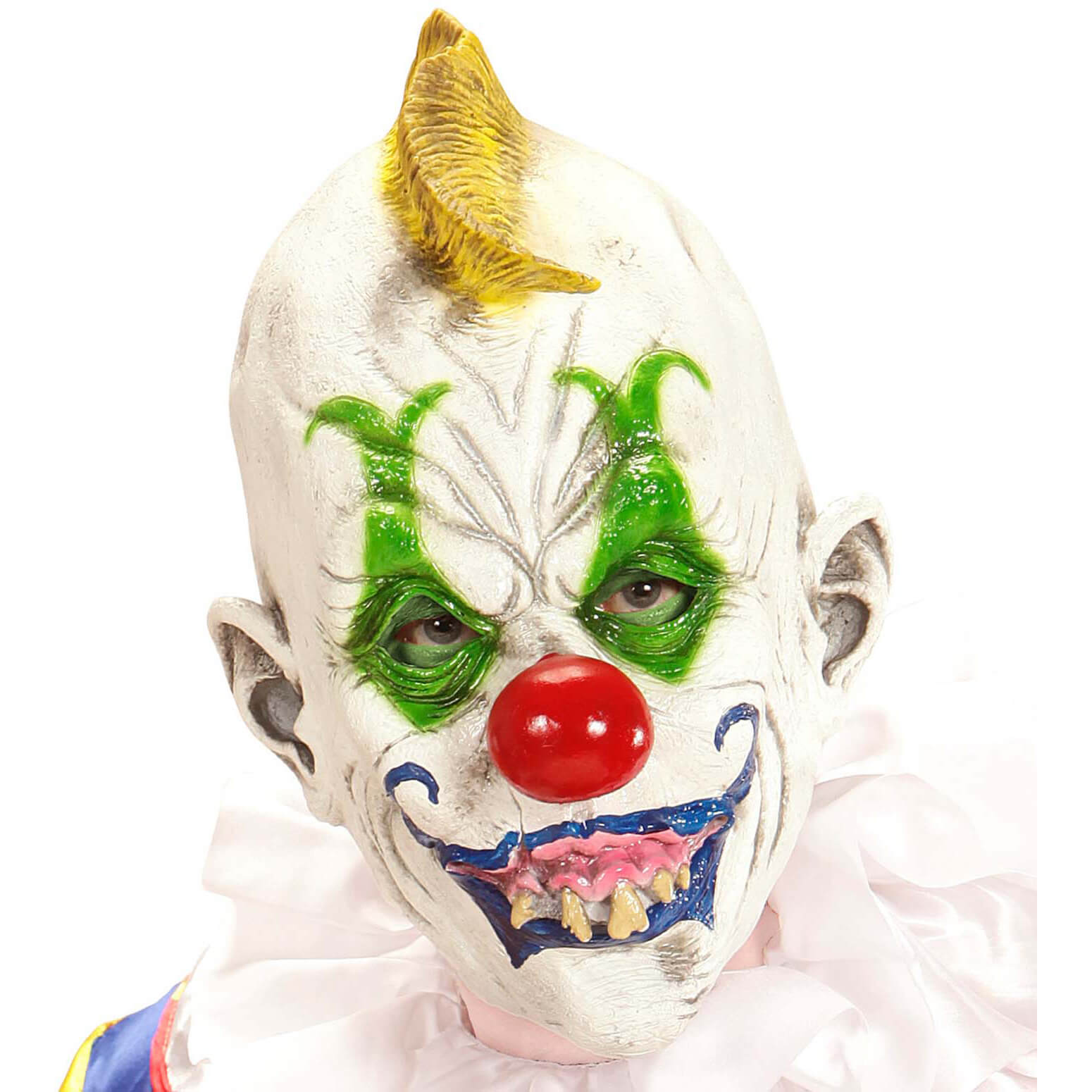 Böser Clown Latexmaske mit gelbem Haarkamm weiß-grün