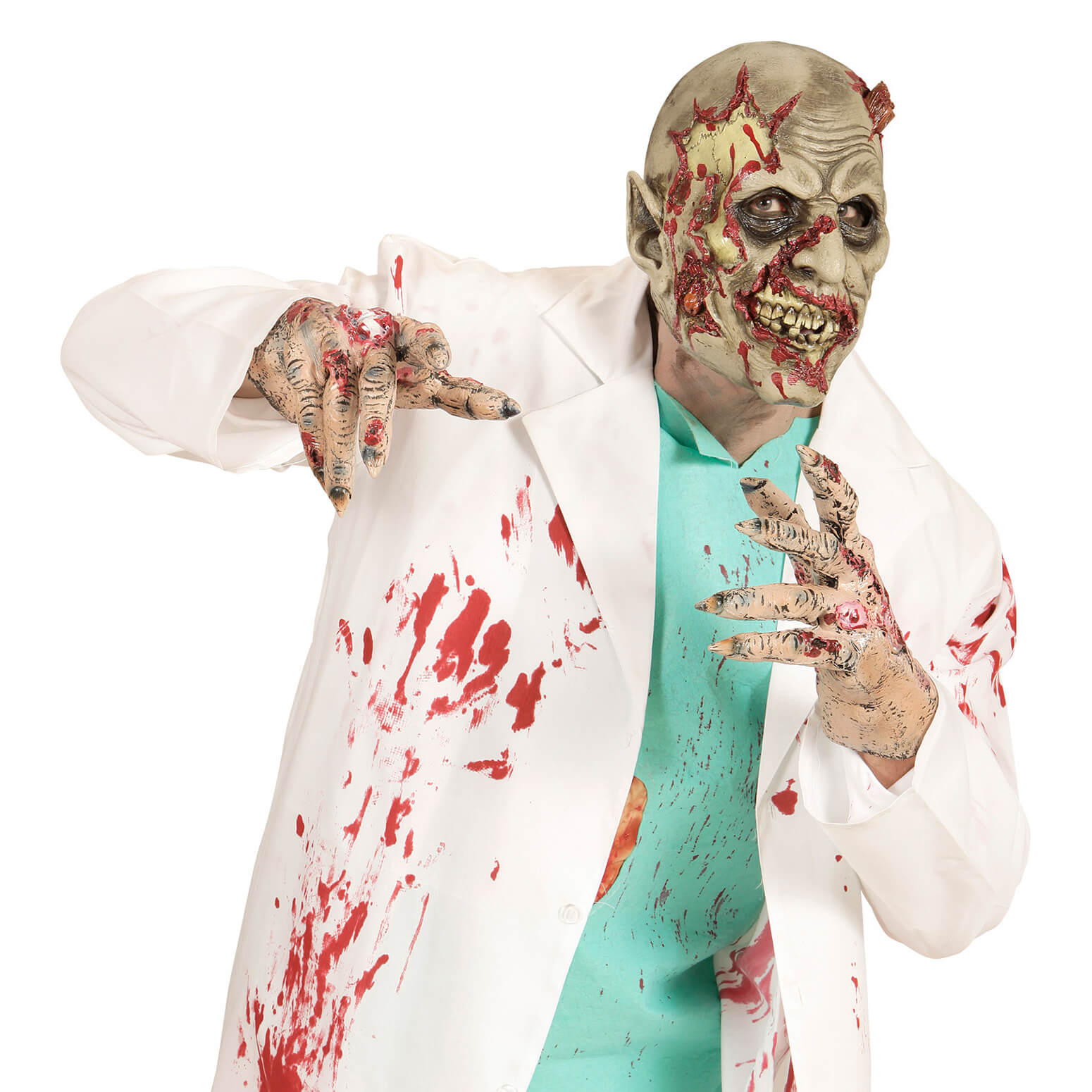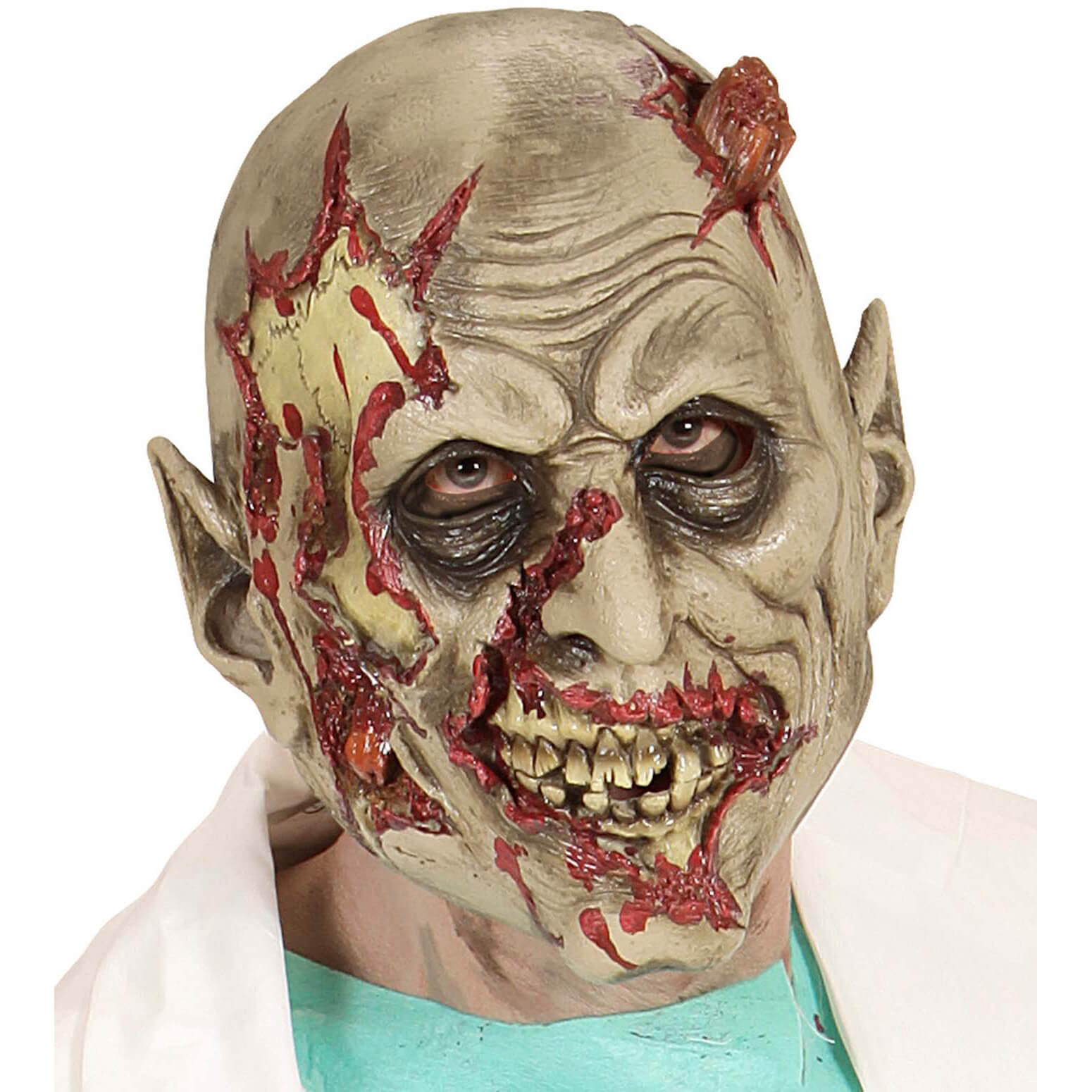 Zombie blutig Latexmaske mit Fremdkörper im Kopf beige-grün