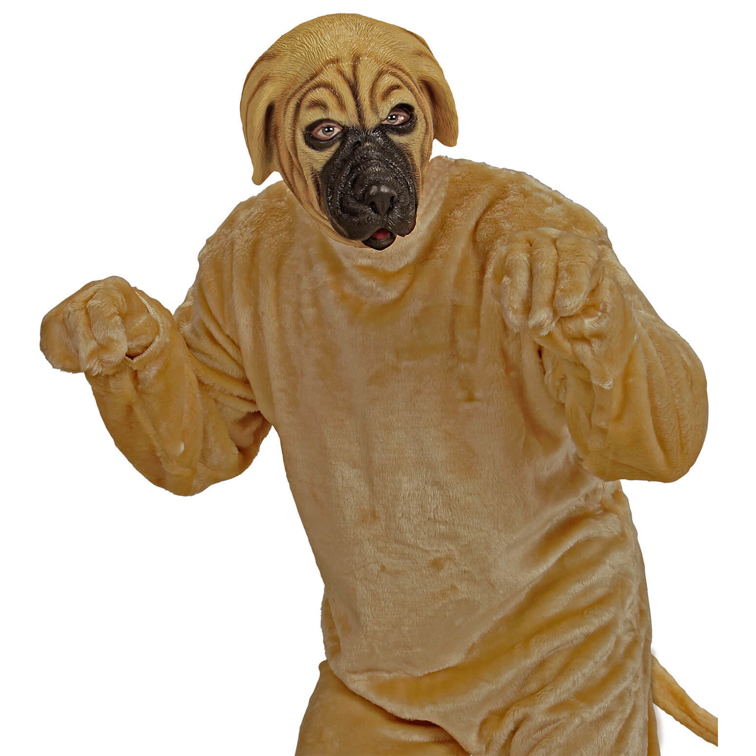 Hund Bullmastiff Latexmaske Vollmaske Deluxe braun-schwarz