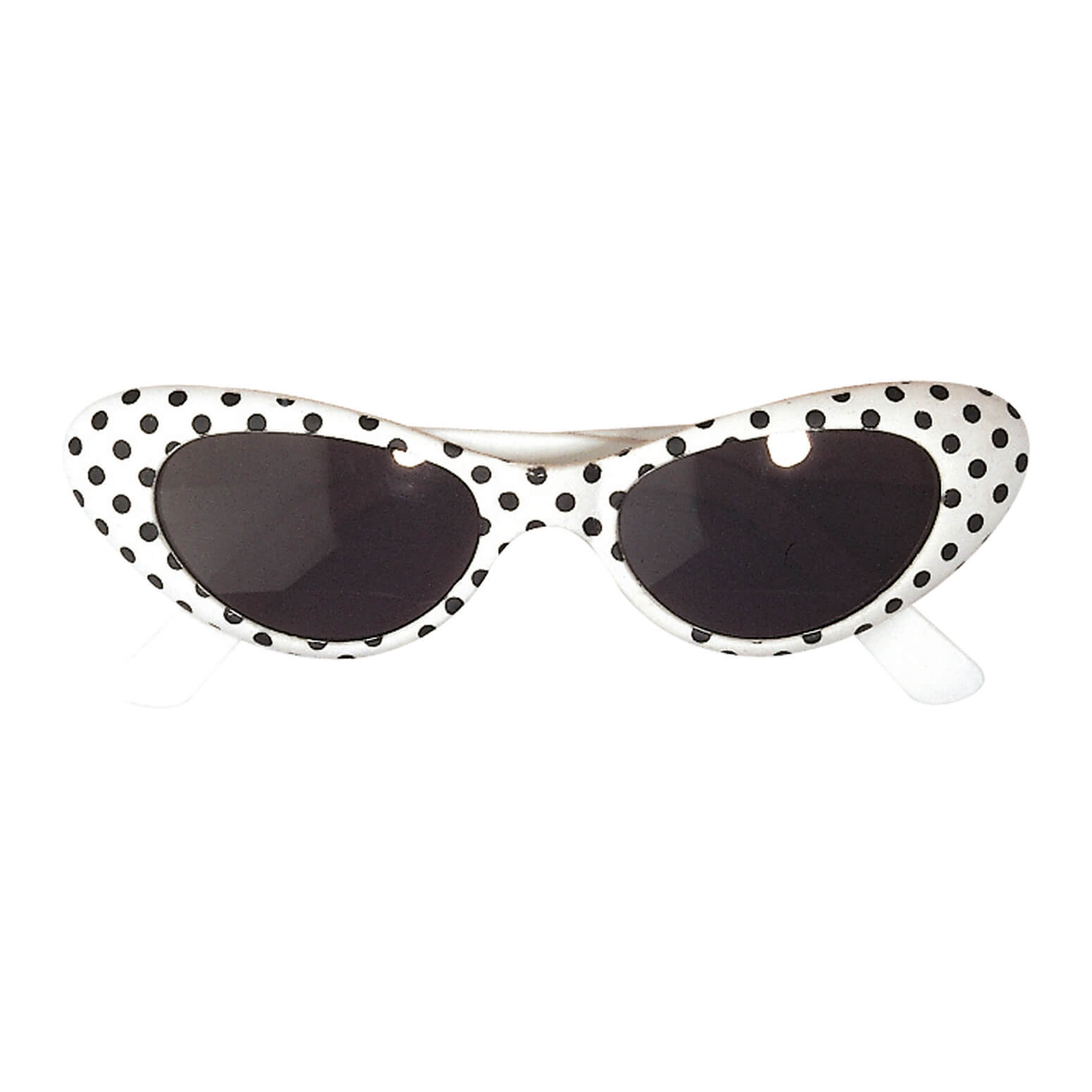 50er Jahre Cateyebrille Rockabilly mit Punkten weiß-schwarz