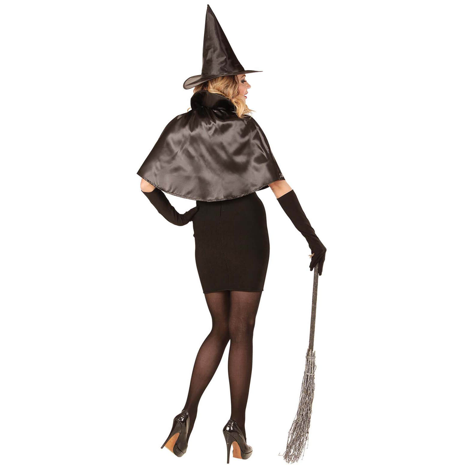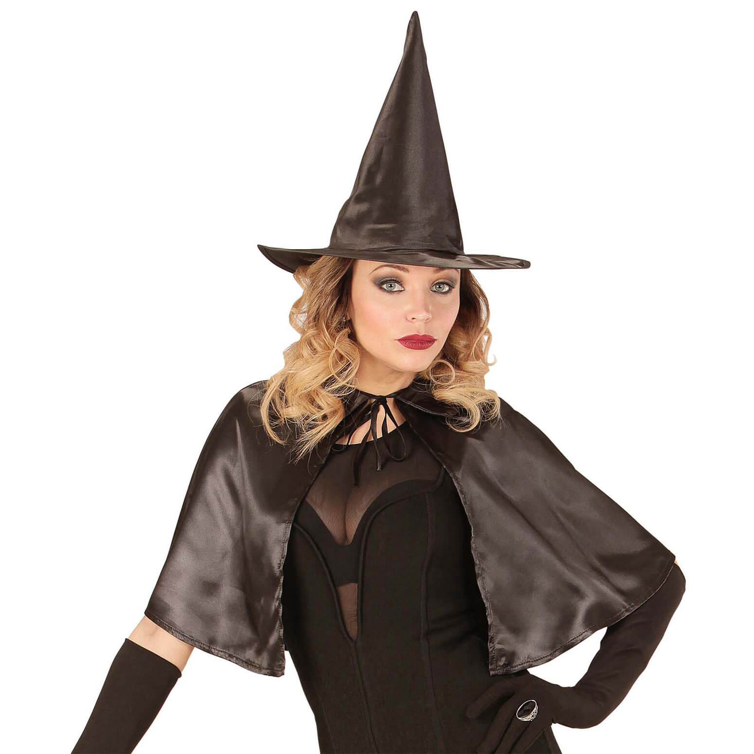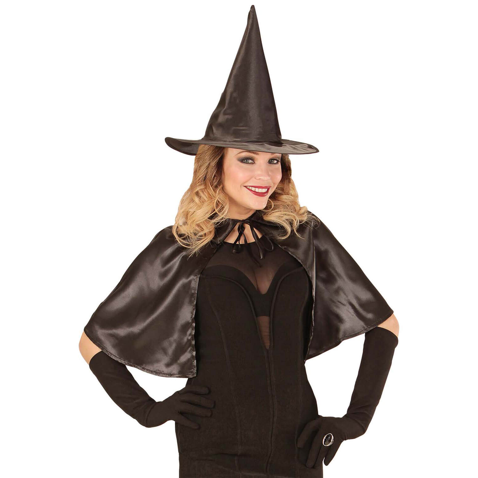 Vampirin/Hexe Cape kurz Schultercape mit Hut aus Satin schwarz – (ARTIKEL/REFERNZ: 8003558968916/WI96891 – Kategorie/Suche: – Hersteller: Widmann S.r.l.)