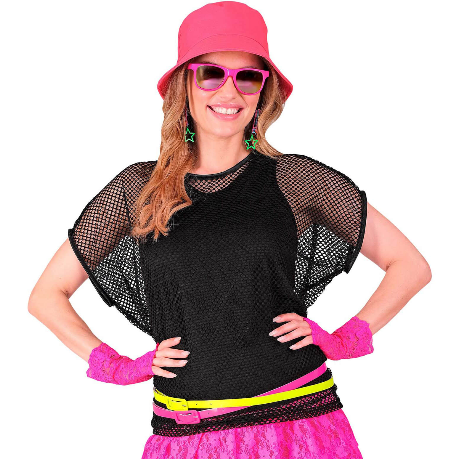 80er 90er Jahre Netzshirt kurzarm T-Shirt Fishnet lang schwarz – (ARTIKEL/REFERNZ: 8003558969913/WI96991-8003558969920/WI96992-8003558969937/WI96993 – Kategorie/Suche: – Hersteller: Widmann S.r.l.)