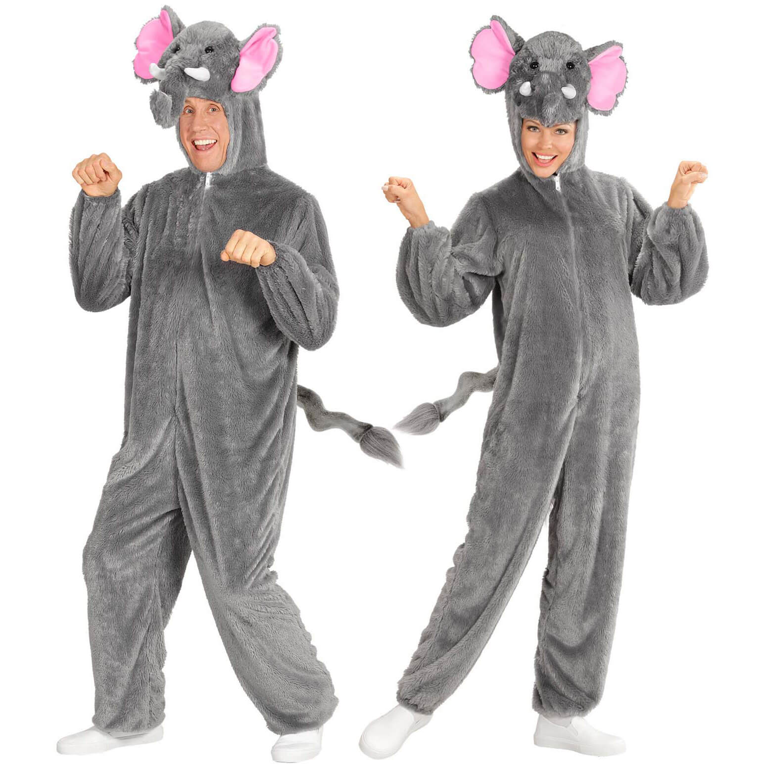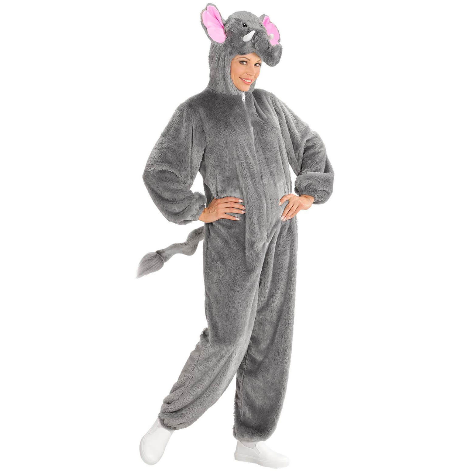 Elefant Plüschkostüm Overall Plüsch aus Soft Plüsch mit Kapuze grau