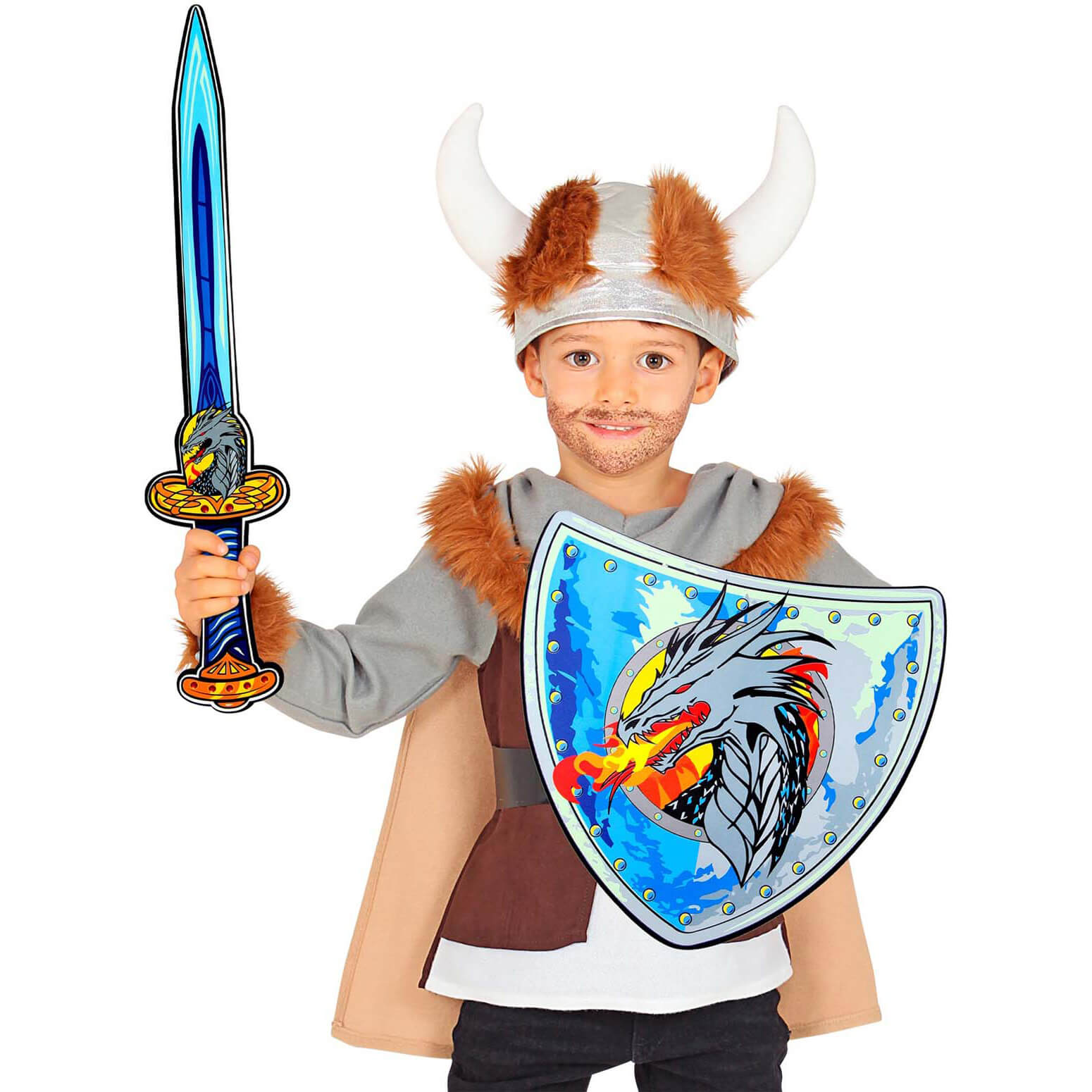 Wikinger/Ritter Schild+Schwert Set für Kinder aus Hartschaum mit Drachenmotiv silber-bunt – (ARTIKEL/REFERNZ: 8003558973064/WI97306 – Kategorie/Suche: – Hersteller: Widmann S.r.l.)