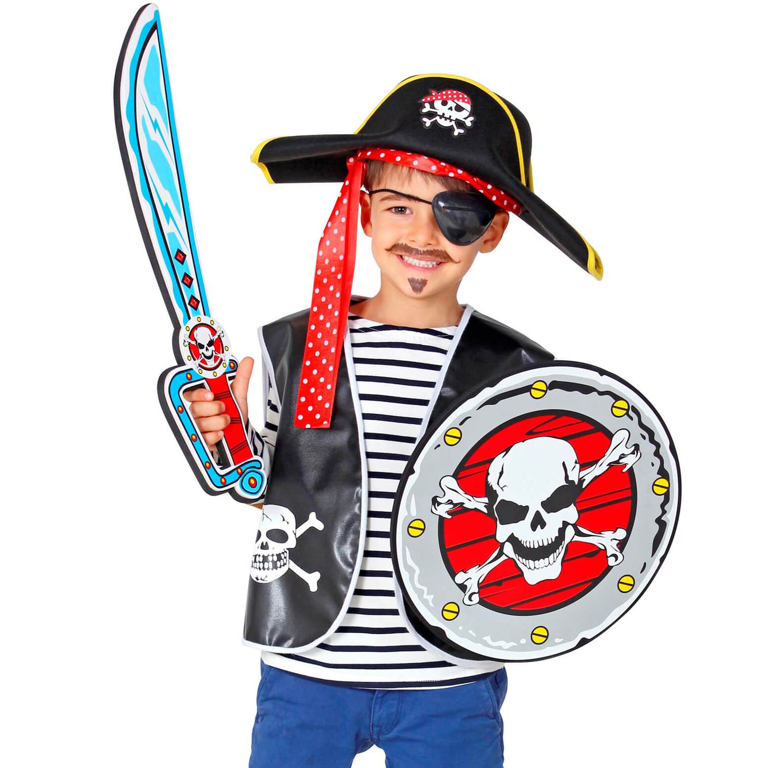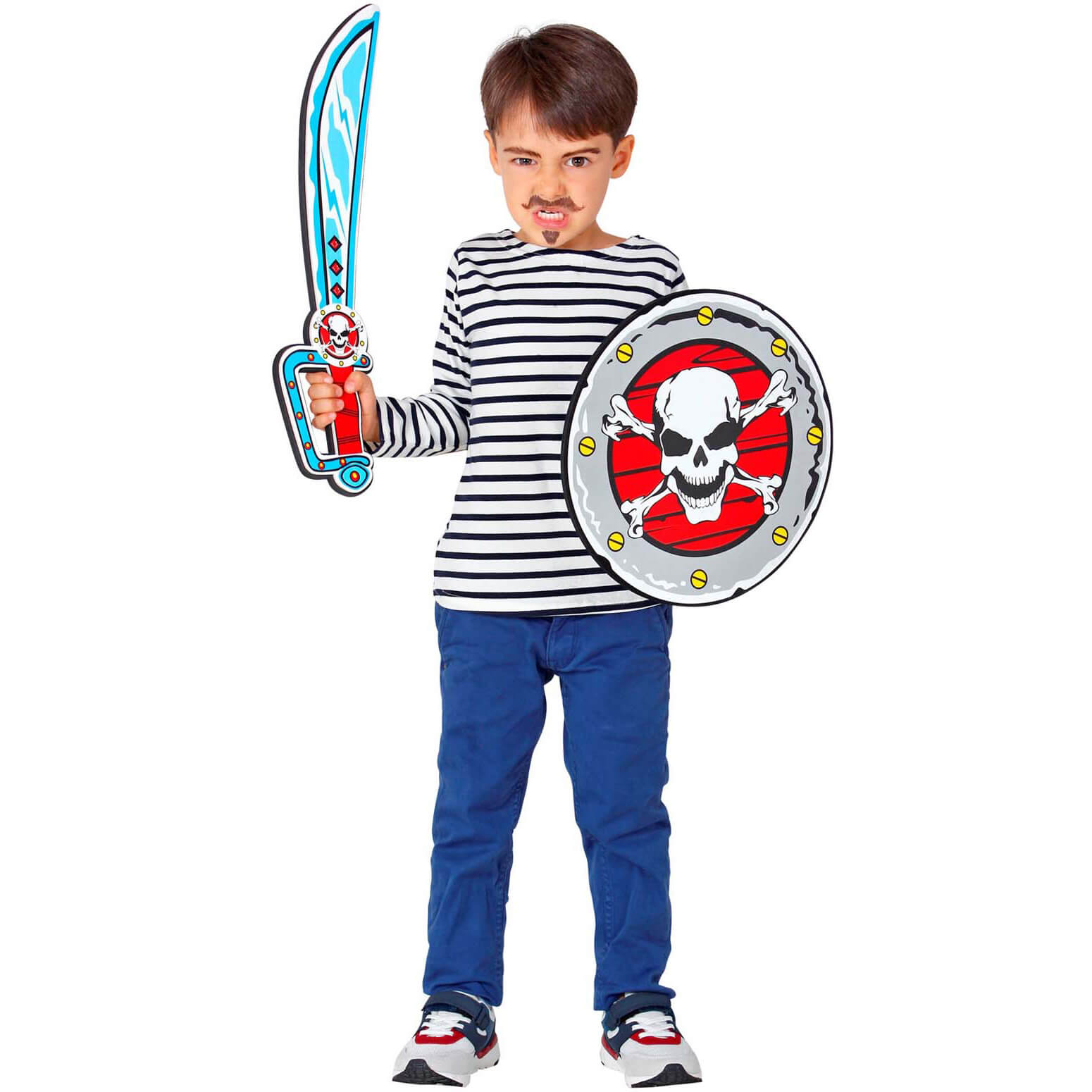 Piraten Schild+Schwert Set für Kinder aus Hartschaum mit Schädelmotiv silber-bunt