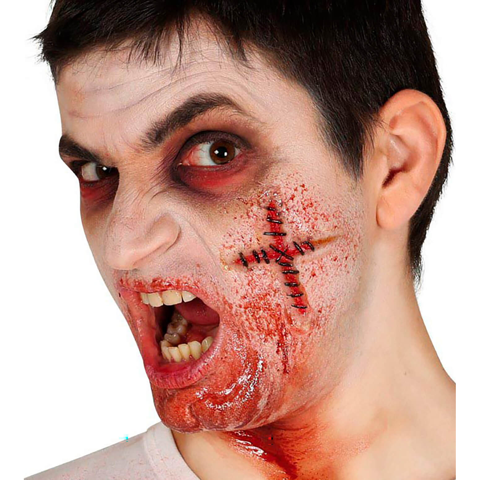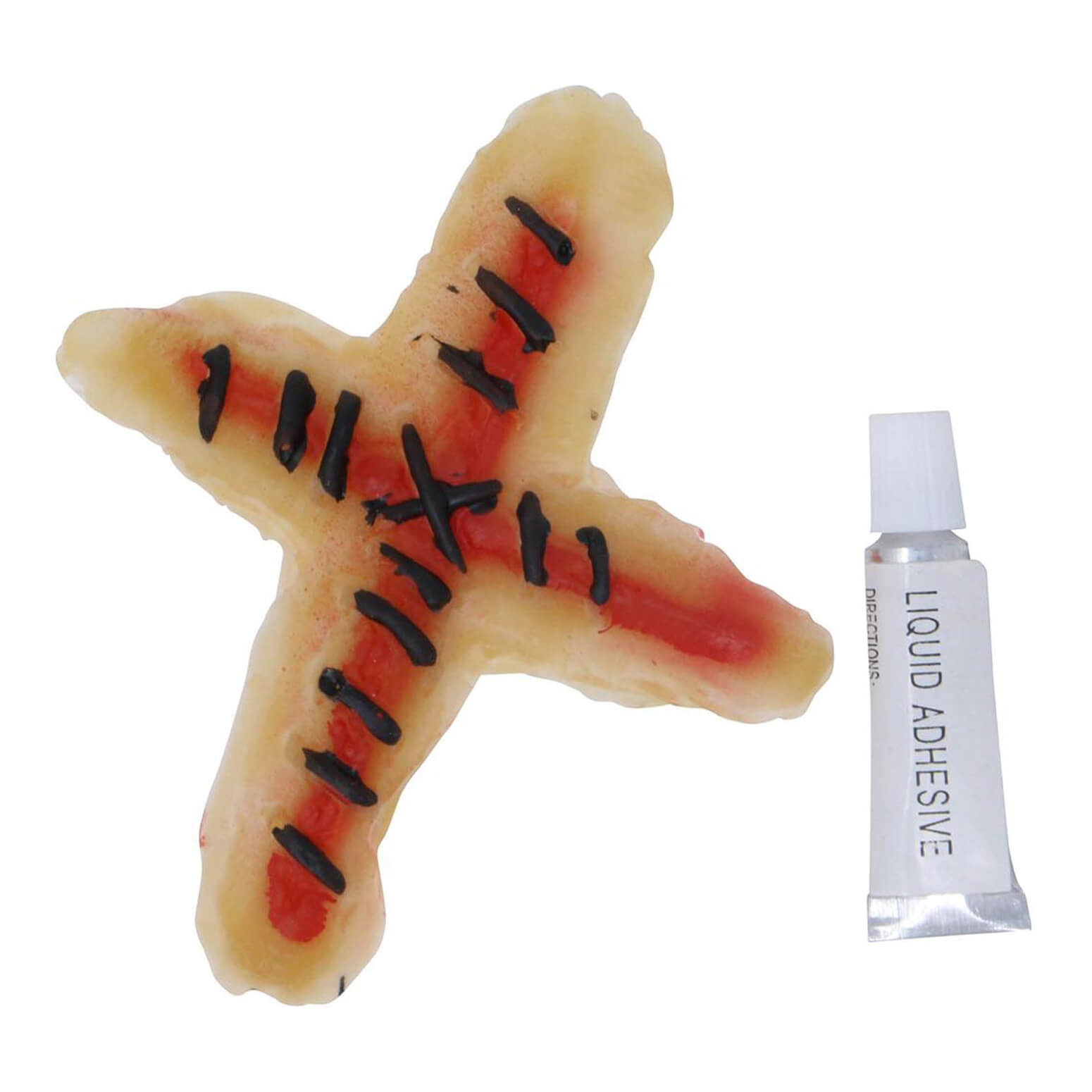 Zombie Wunde Latex Partyqualität mit Kleber Kreuz genäht Classic haut-rot