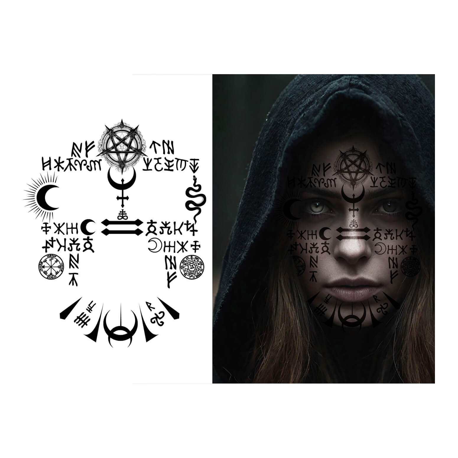 Voodoo Tattoo Set Pentagramm und Runen 30x13cm SATANISCHES GESICHTSTATTOO schwarz