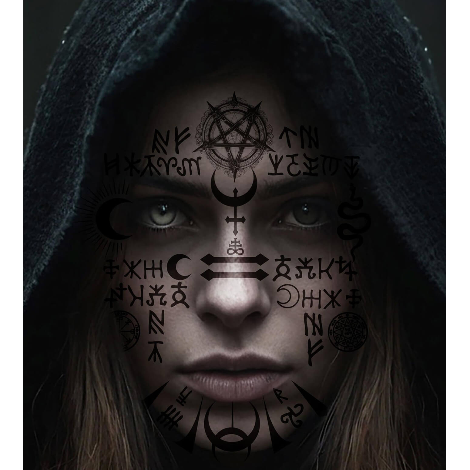 Voodoo Tattoo Set Pentagramm und Runen 30x13cm SATANISCHES GESICHTSTATTOO schwarz – (ARTIKEL/REFERNZ: 8434077159460/GU15946 – Kategorie/Suche: – Hersteller: Fiestas Girca S.L.)