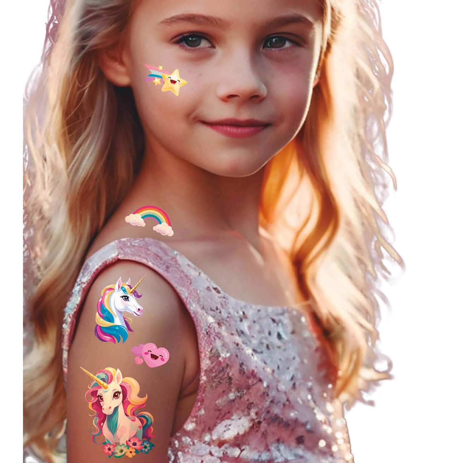 Pferd Einhorn Tattoo Set Einhörner und Regenbogen 14×30 EINHORN TATTOOS bunt