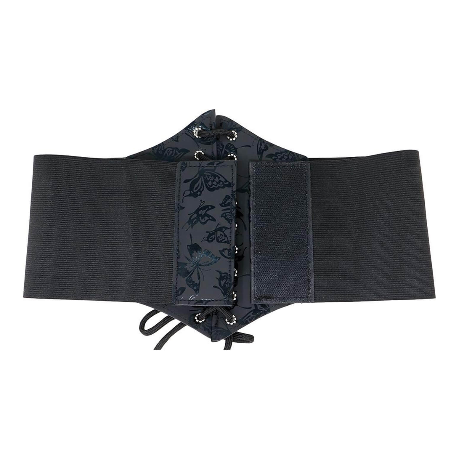 Korsage Korsett Stretch in Brokatoptik mit Schmetterlingen einfarbig schwarz