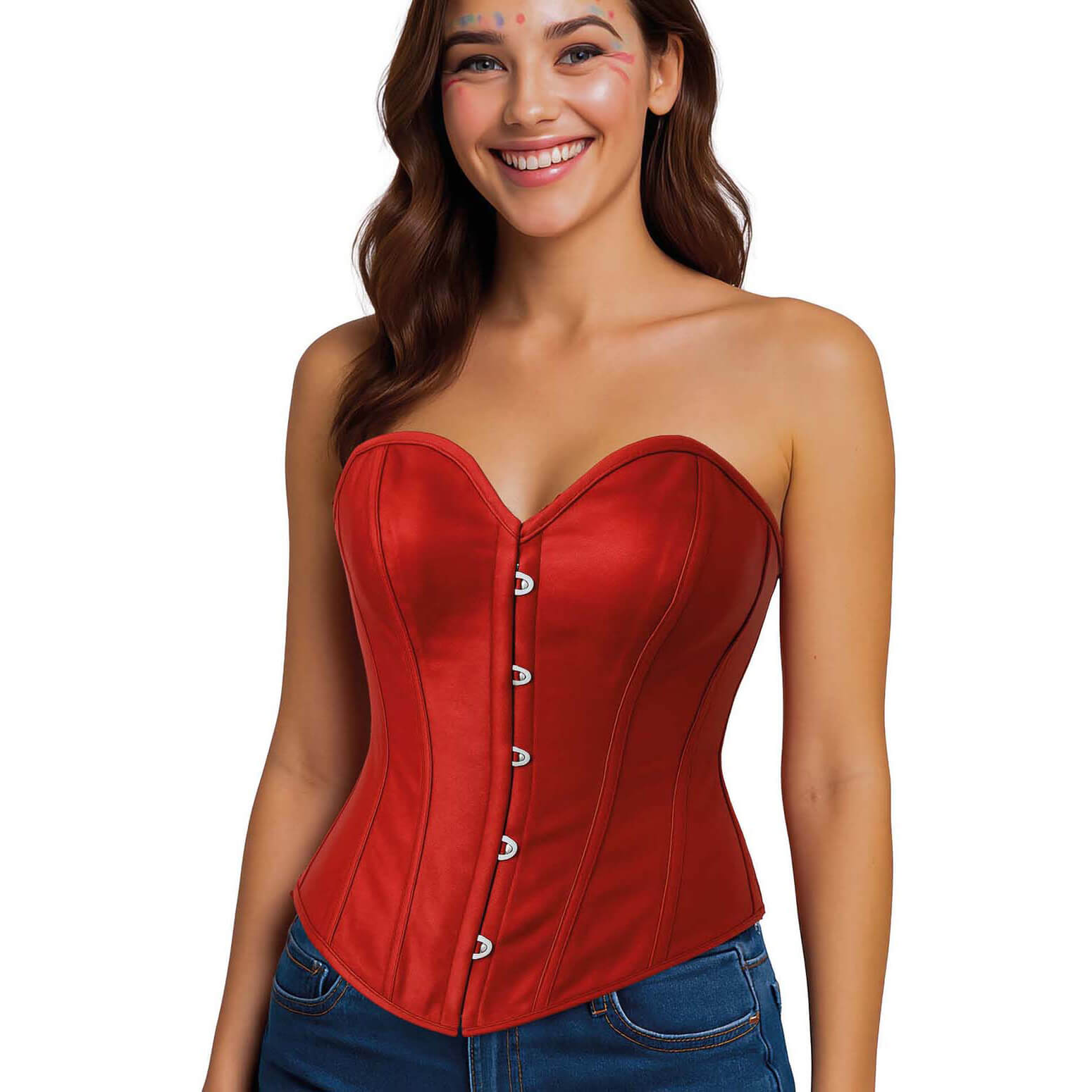Korsage Korsett Überbrustkorsett mit Stäbchen hinten geschnürt einfarbig rot
