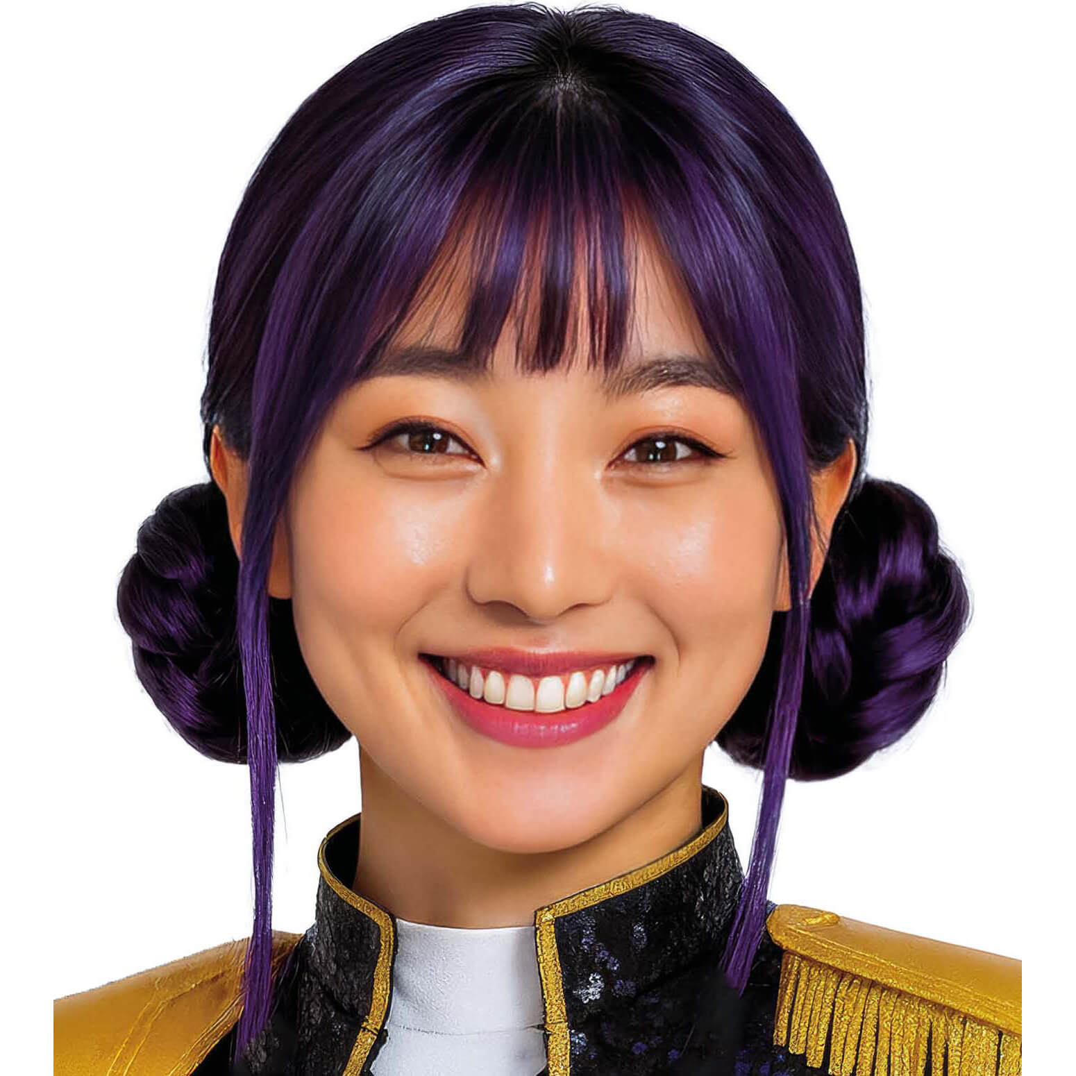 Superheldin K-Pop Hochsteckperücke Alien oder Double Buns mit langem Pony STARRY BUNS schwarz-lila