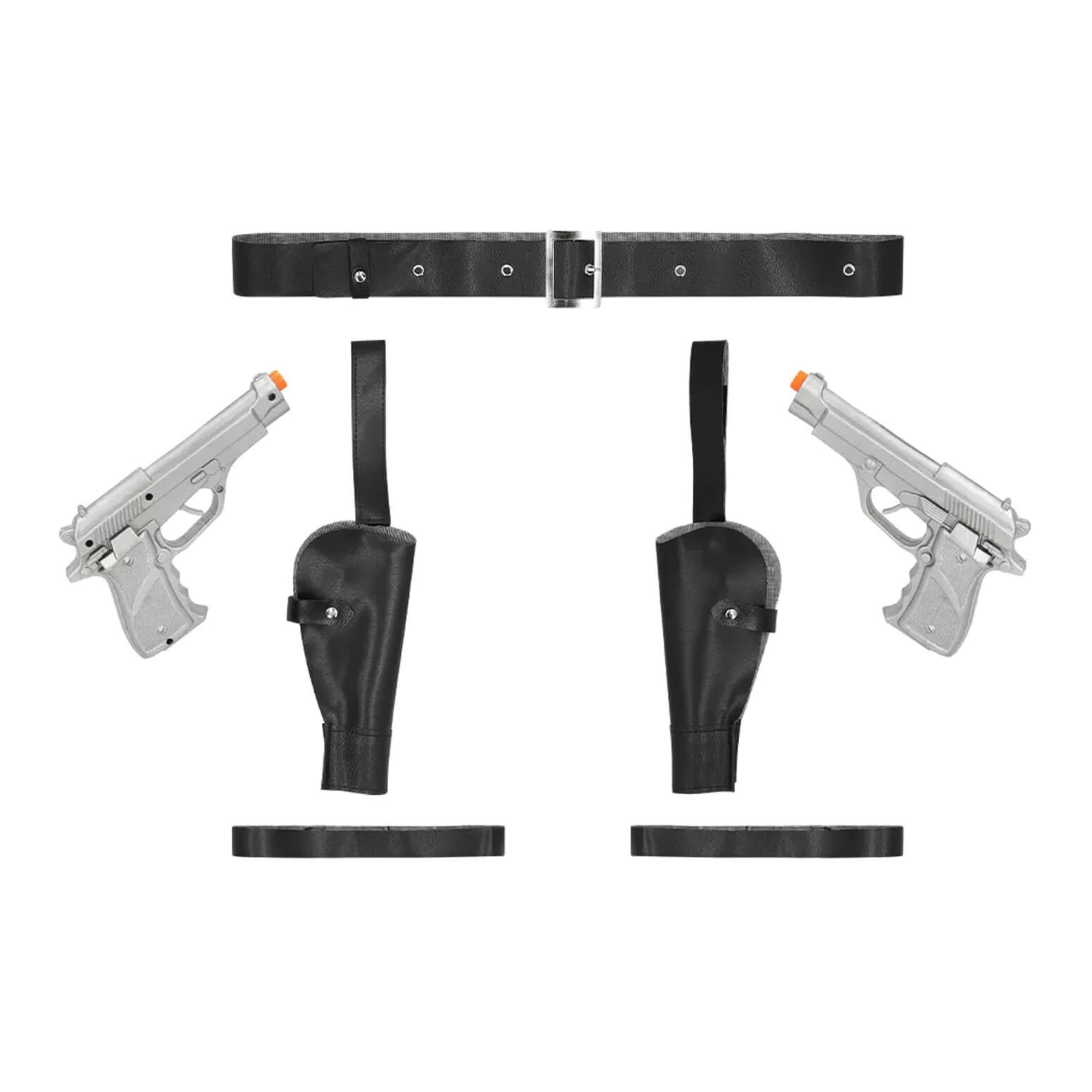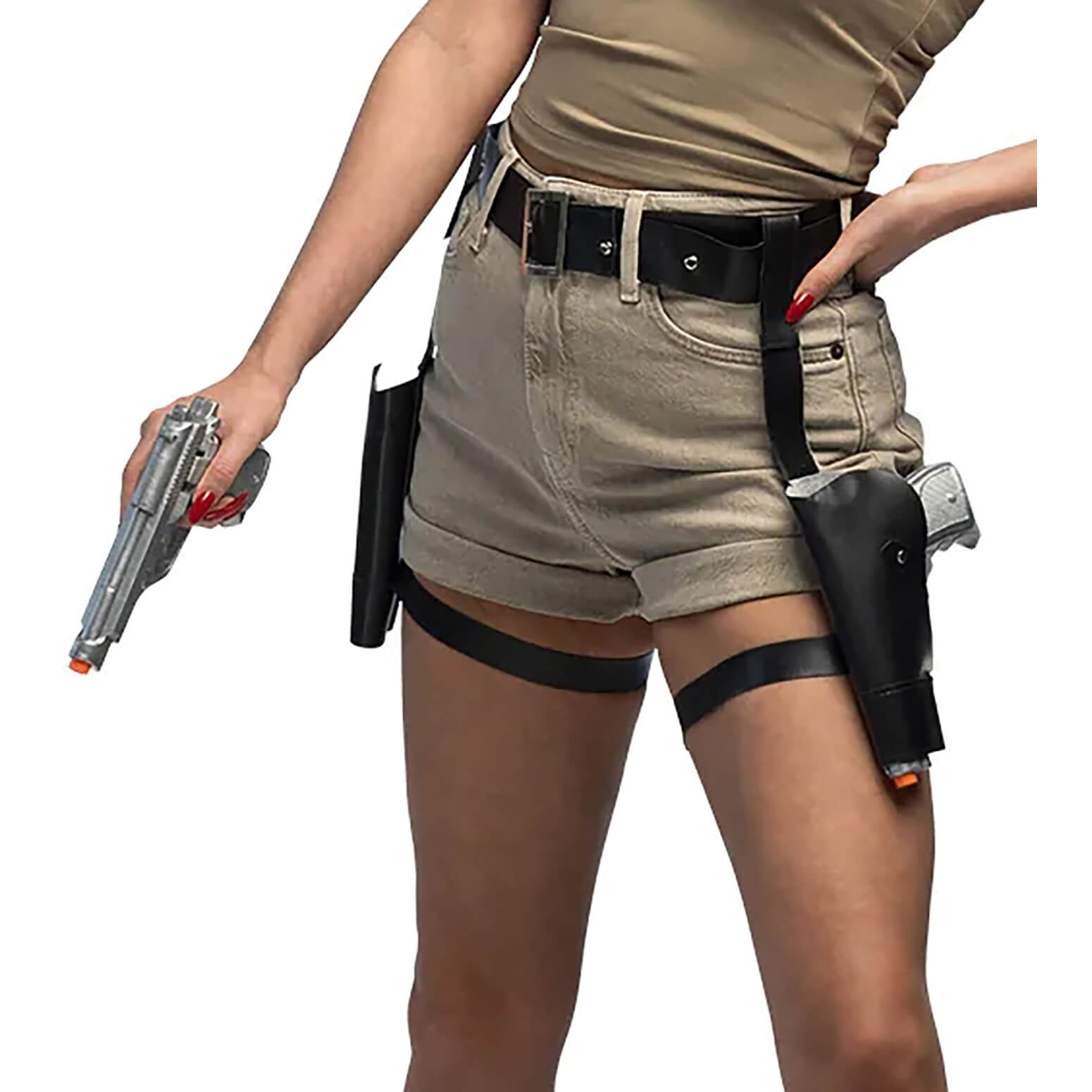 Superheldin Grabräuberin Holster mit 2 Pistolen Gürtel-Oberschenkelholster mit Dekopistolen aus Kunststoff C schwarz