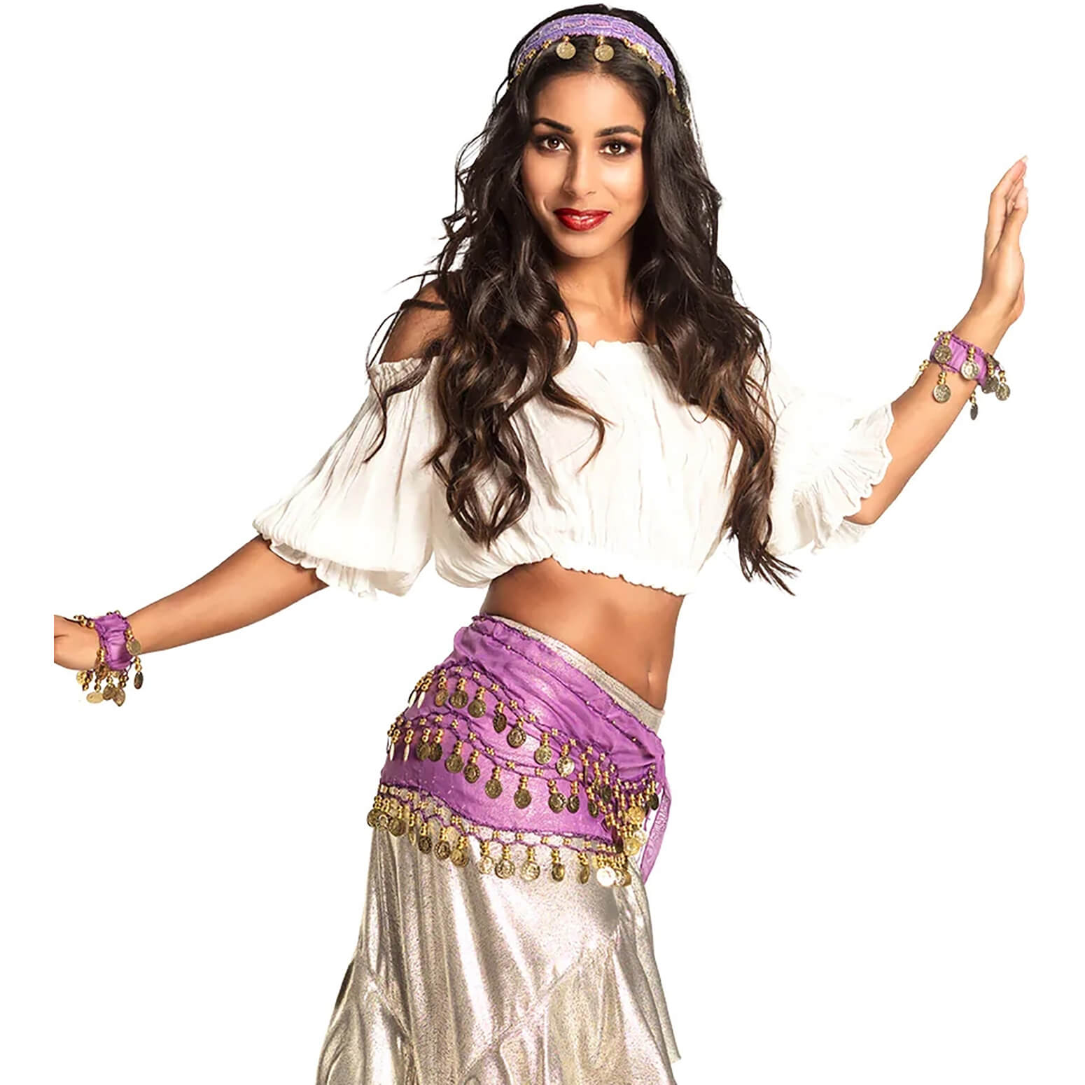 Orientalin Gipsy/Piratin Hüfttuch+Armbänder+Haarreif Set mit goldenen Münzen BELLY DANCE lila – (ARTIKEL/REFERNZ: 8712026004628/BO00462 – Kategorie/Suche: – Hersteller: Boland BV)