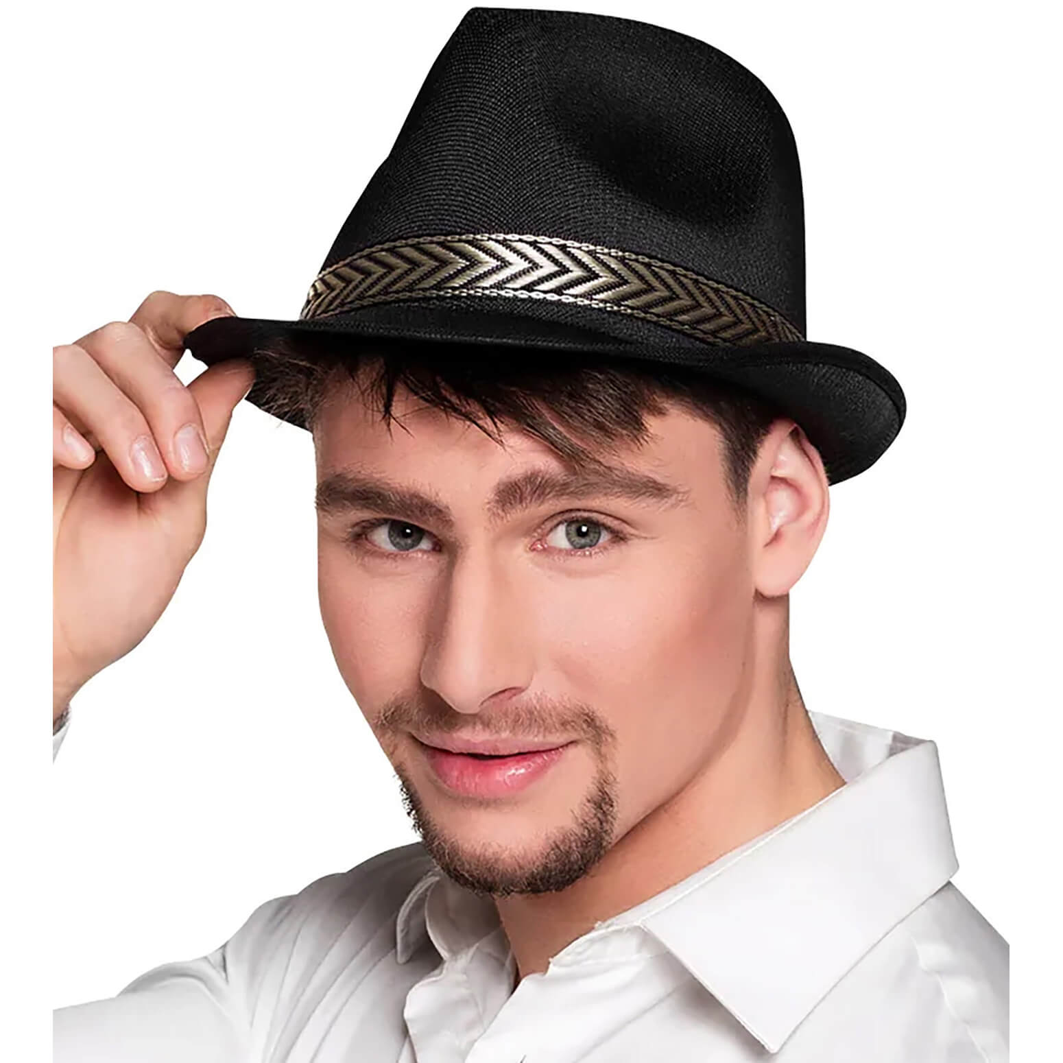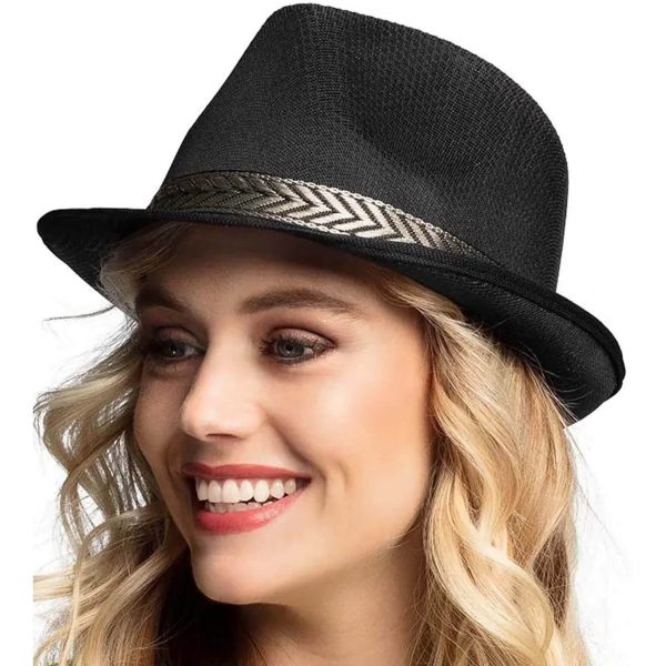 Trilbyhut schmale Krempe gewebt mit Band Funky einfarbig schwarz – (ARTIKEL/REFERNZ: 8712026013941/BO01394 – Kategorie/Suche: Fedora Gangsterhut – Hersteller: Boland BV)