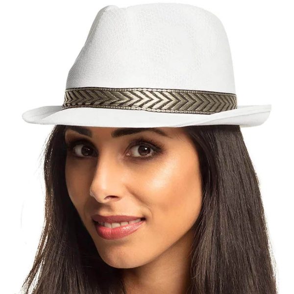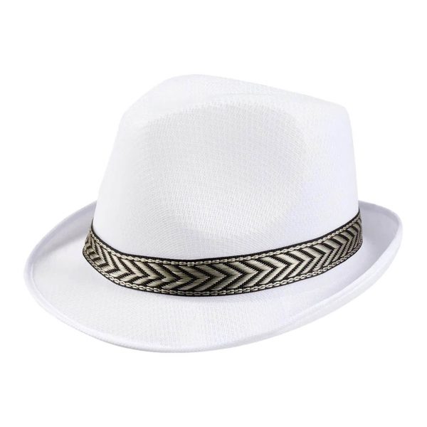 Trilbyhut schmale Krempe gewebt mit Band Funky einfarbig weiß – (ARTIKEL/REFERNZ: 8712026013958/BO01395 – Kategorie/Suche: Fedora Gangsterhut – Hersteller: Boland BV)