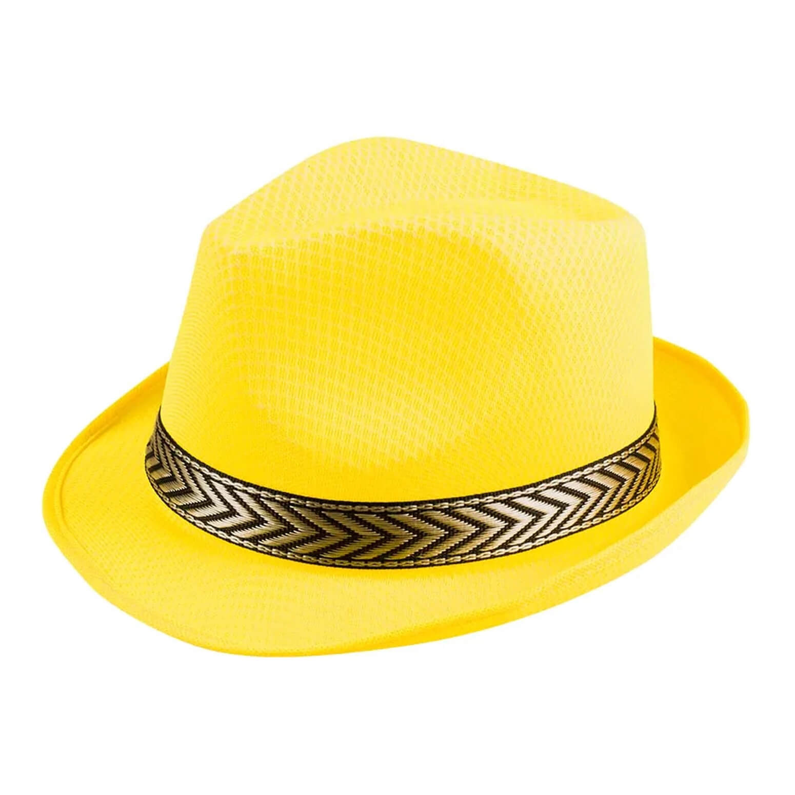 Trilbyhut schmale Krempe gewebt mit Band Funky einfarbig gelb – (ARTIKEL/REFERNZ: 8712026013965/BO01396 – Kategorie/Suche: Fedora Gangsterhut – Hersteller: Boland BV)