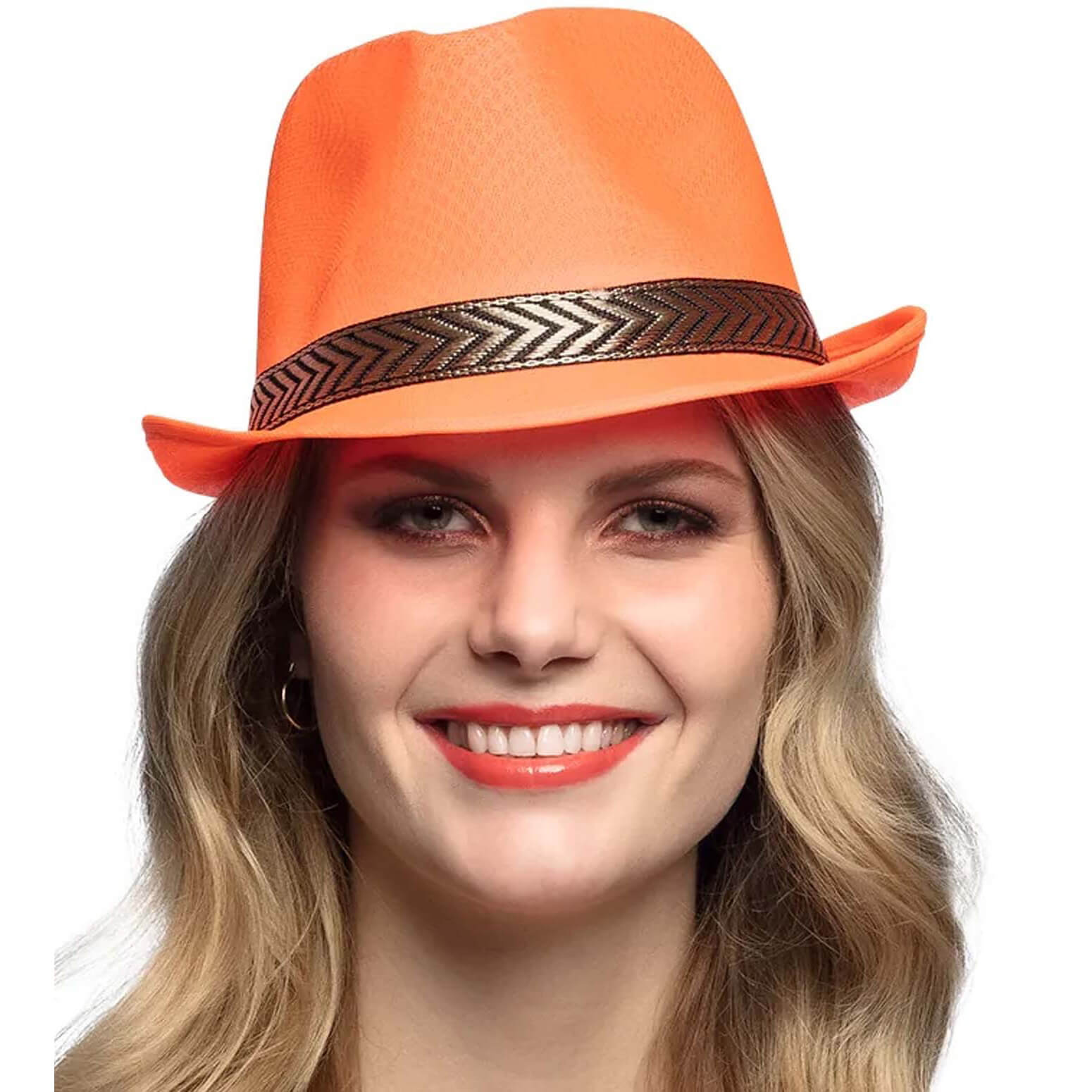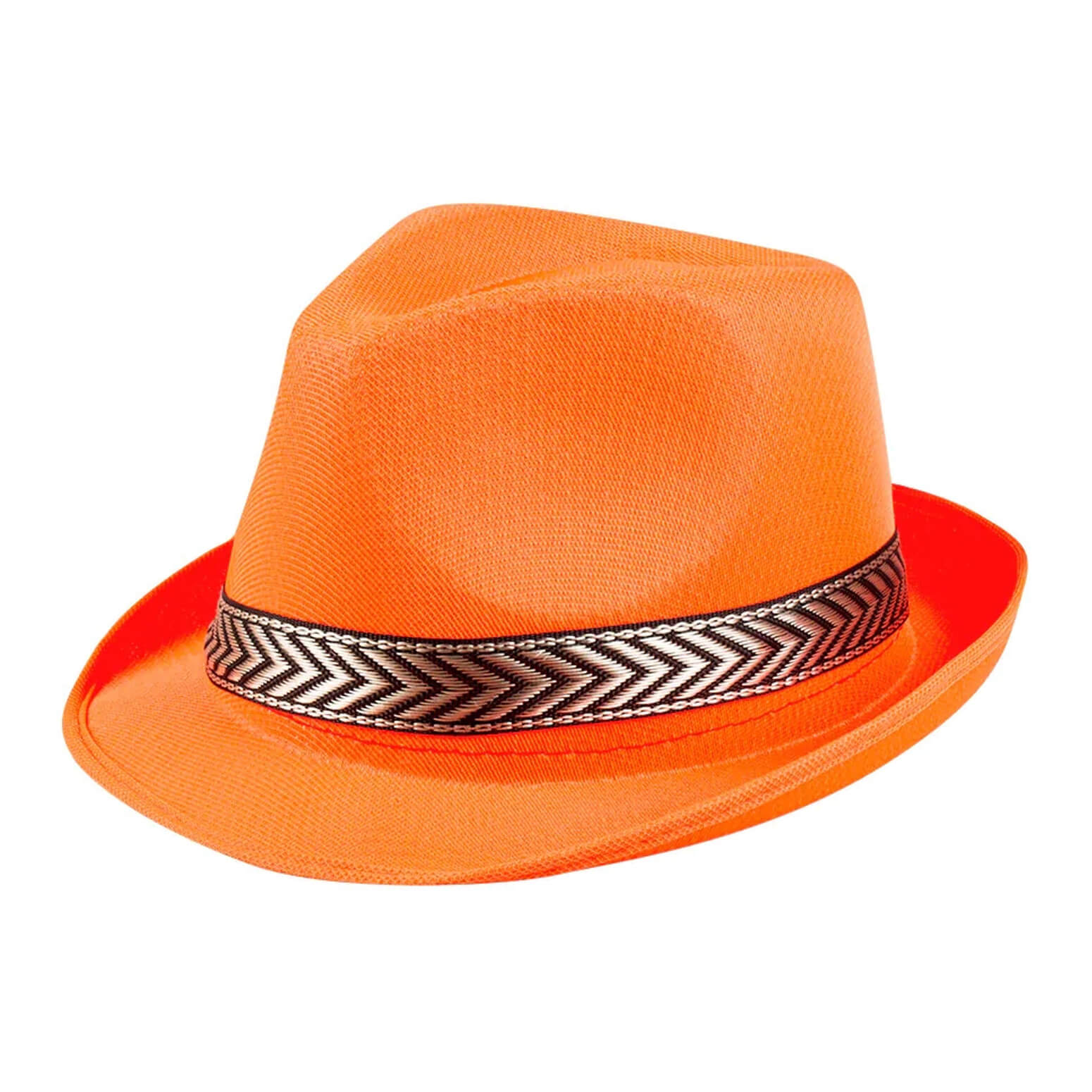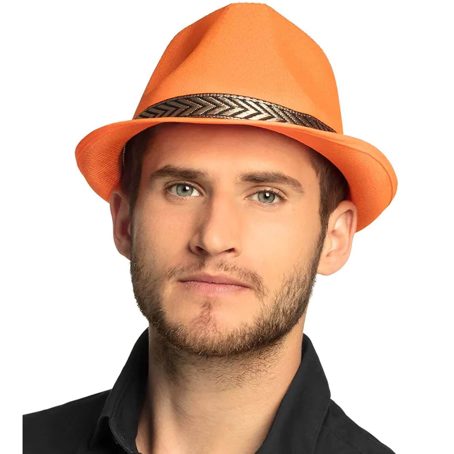 Trilbyhut schmale Krempe gewebt mit Band Funky einfarbig neonorange – (ARTIKEL/REFERNZ: 8712026013996/BO01399 – Kategorie/Suche: Fedora Gangsterhut – Hersteller: Boland BV)