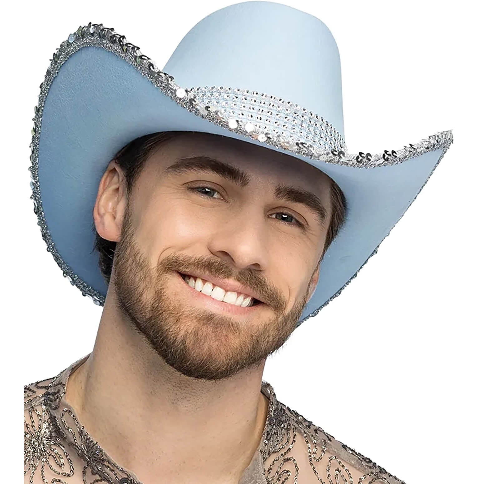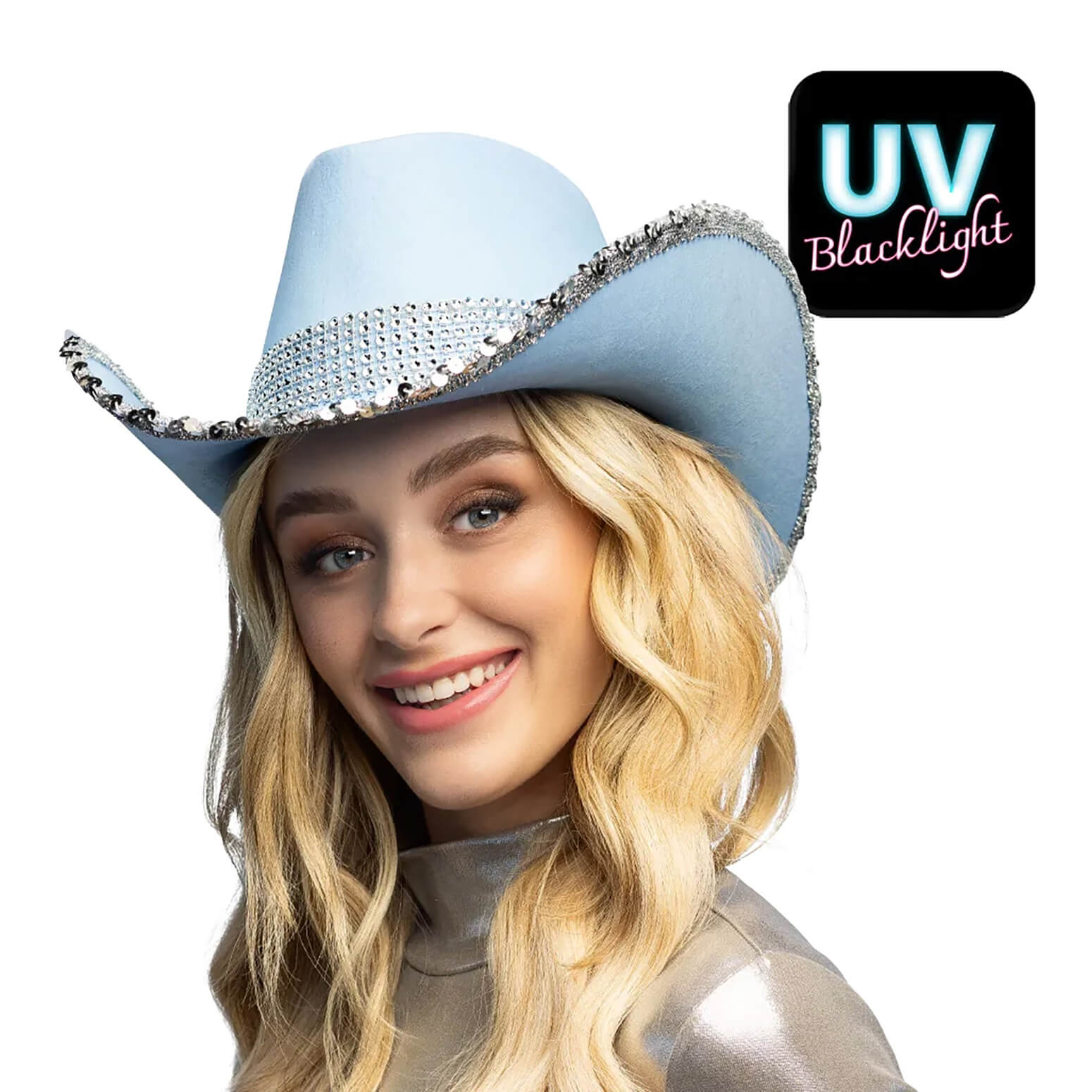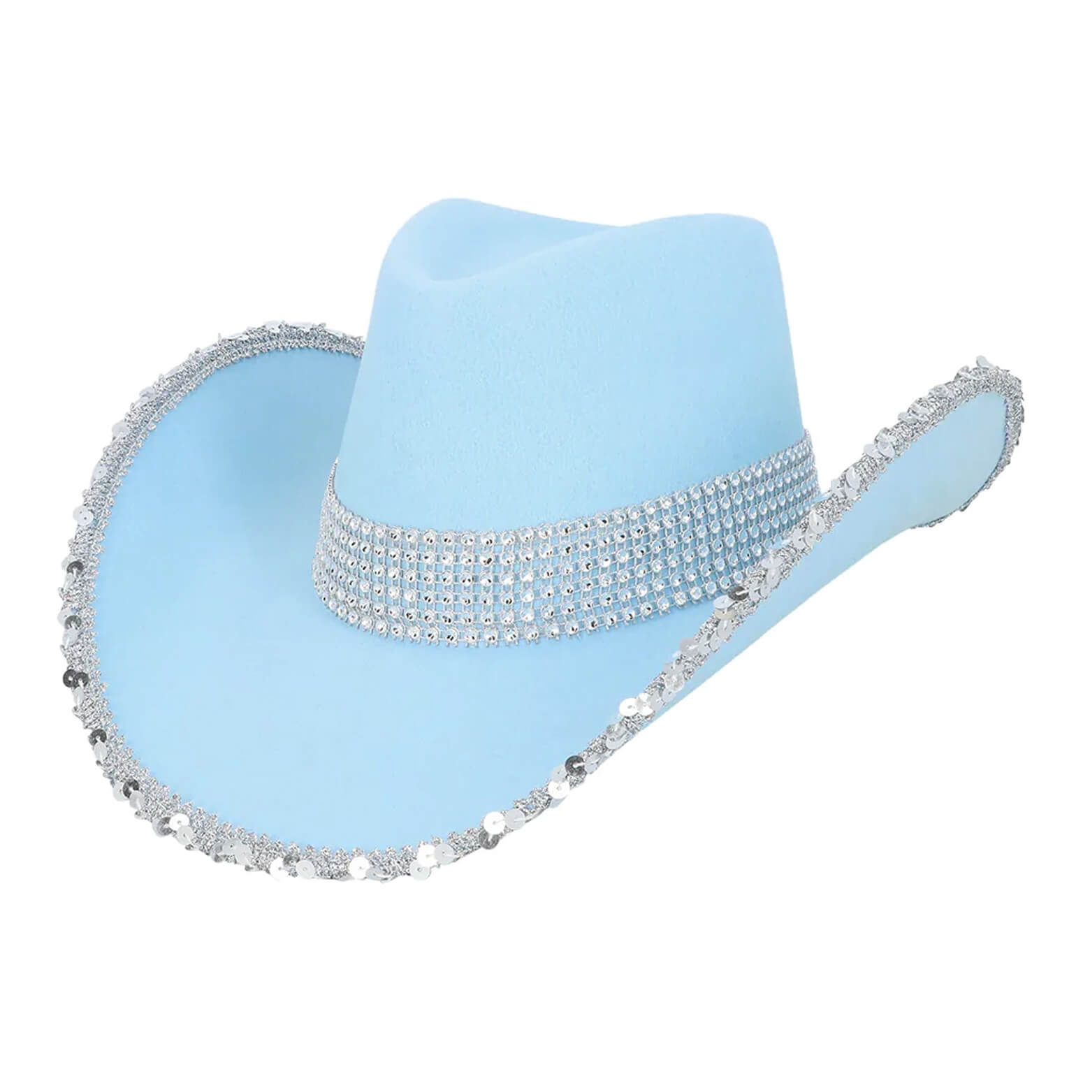 Cowgirl Cowboy / Festival Cowboyhut mit Strass und Pailletten SPARK hellblau-silber