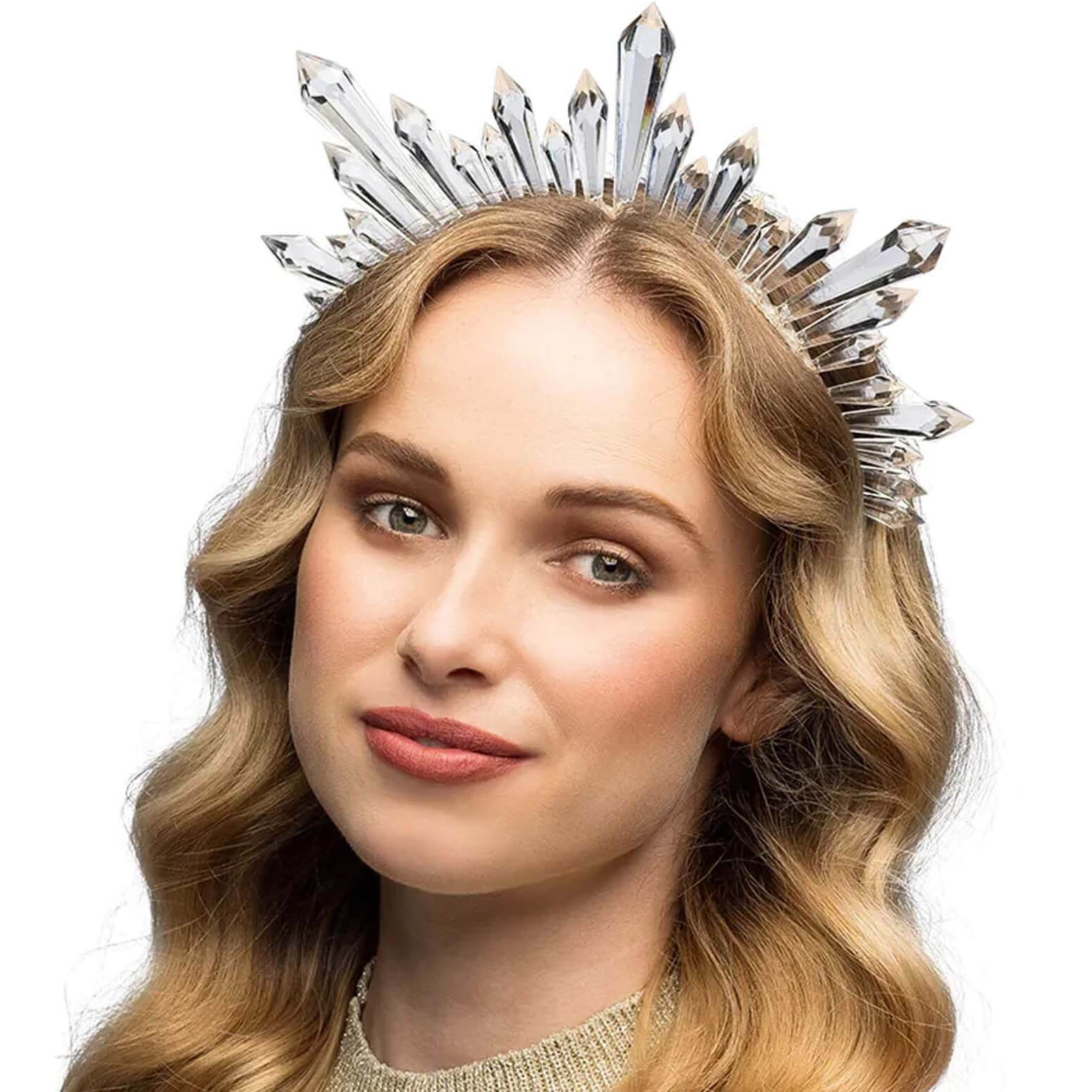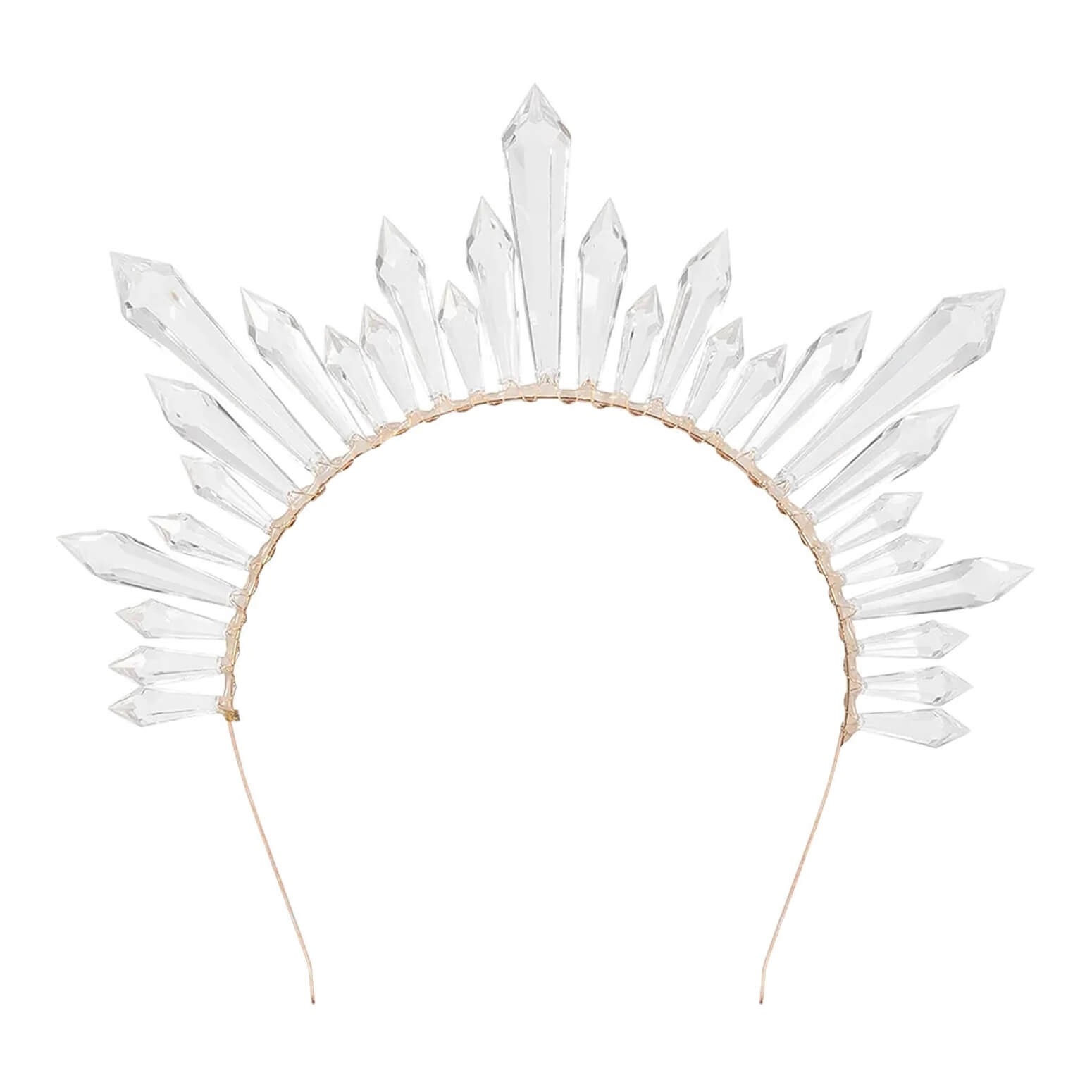 Eiskristalle Krone Diadem Haarreif Heiligenschein aus Metall SAPHIRA klar-gold