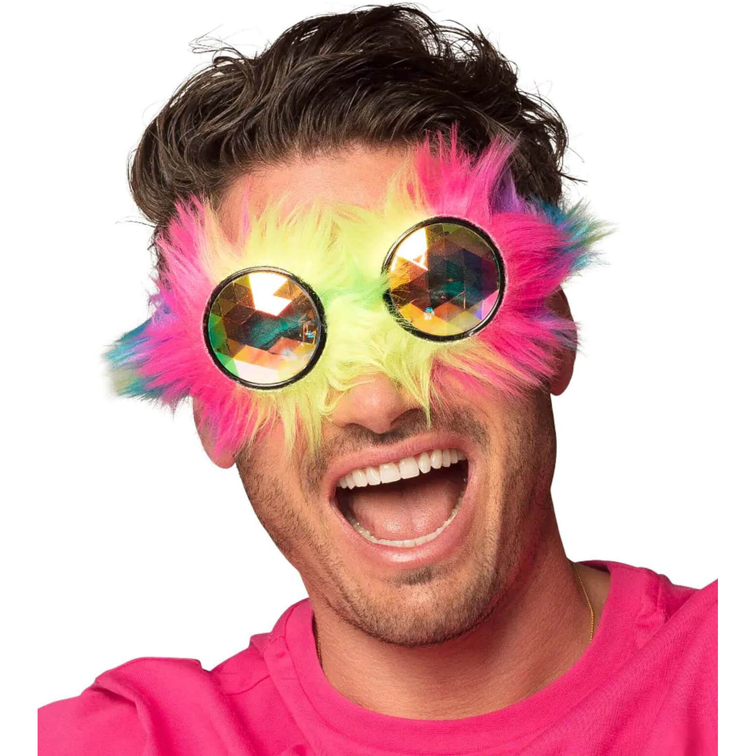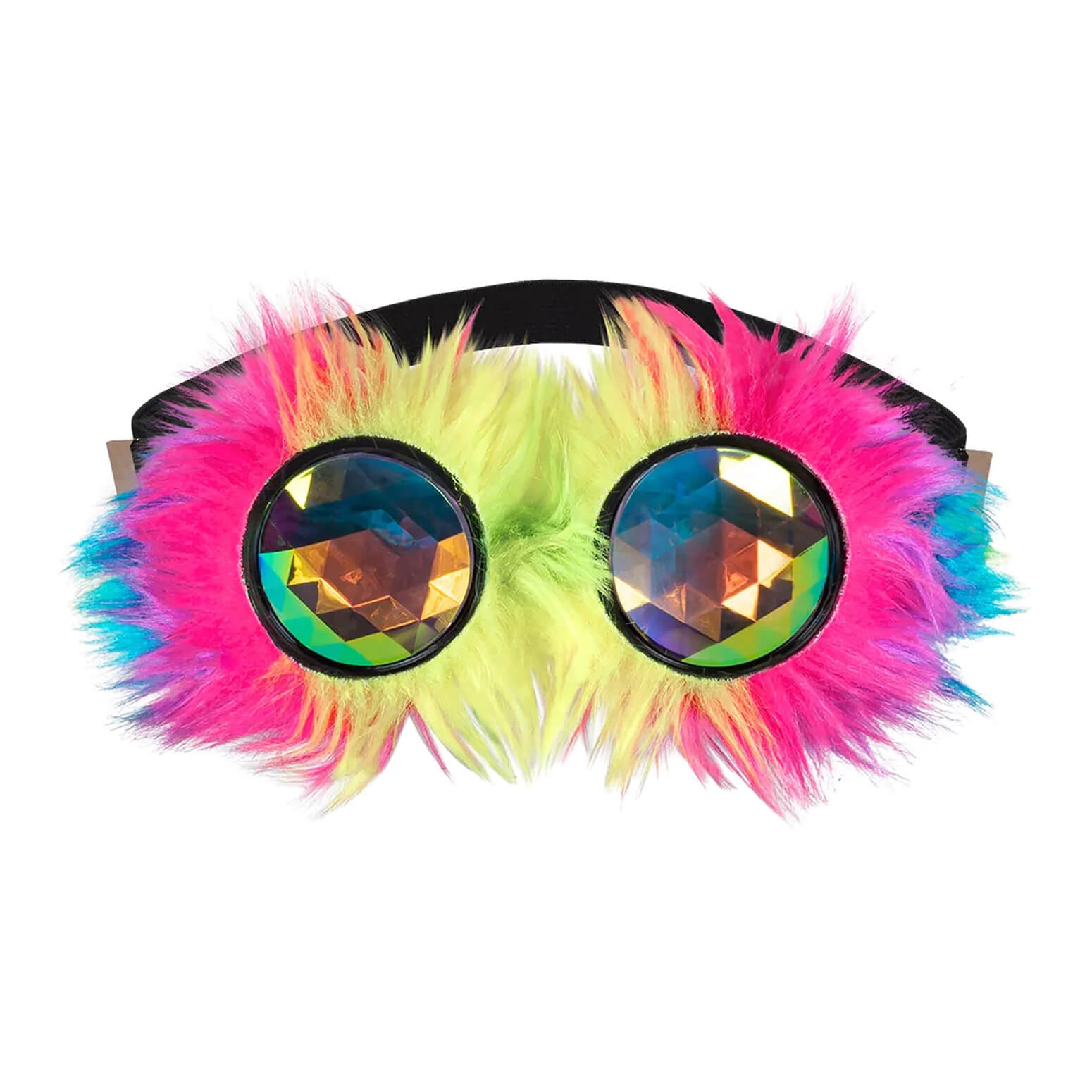 80er 90er Jahre Schweißerbrille Goggles mit Plüsch Rave Brille bunt