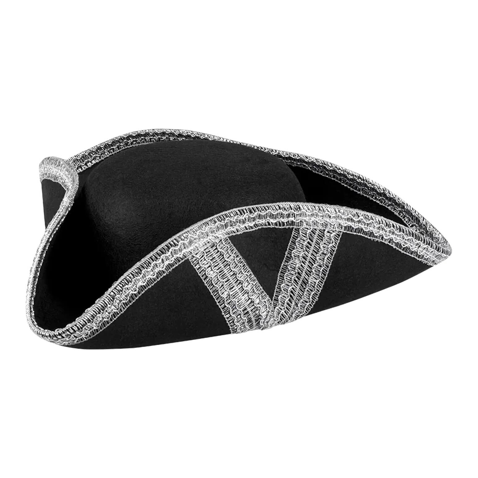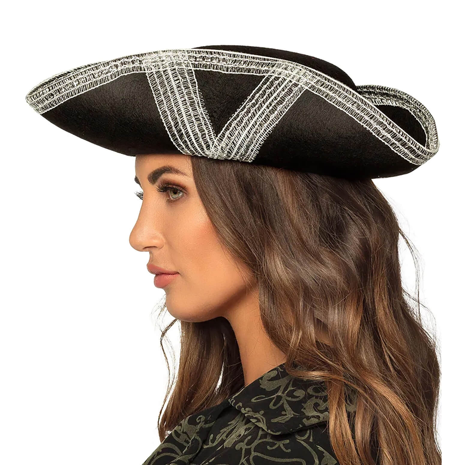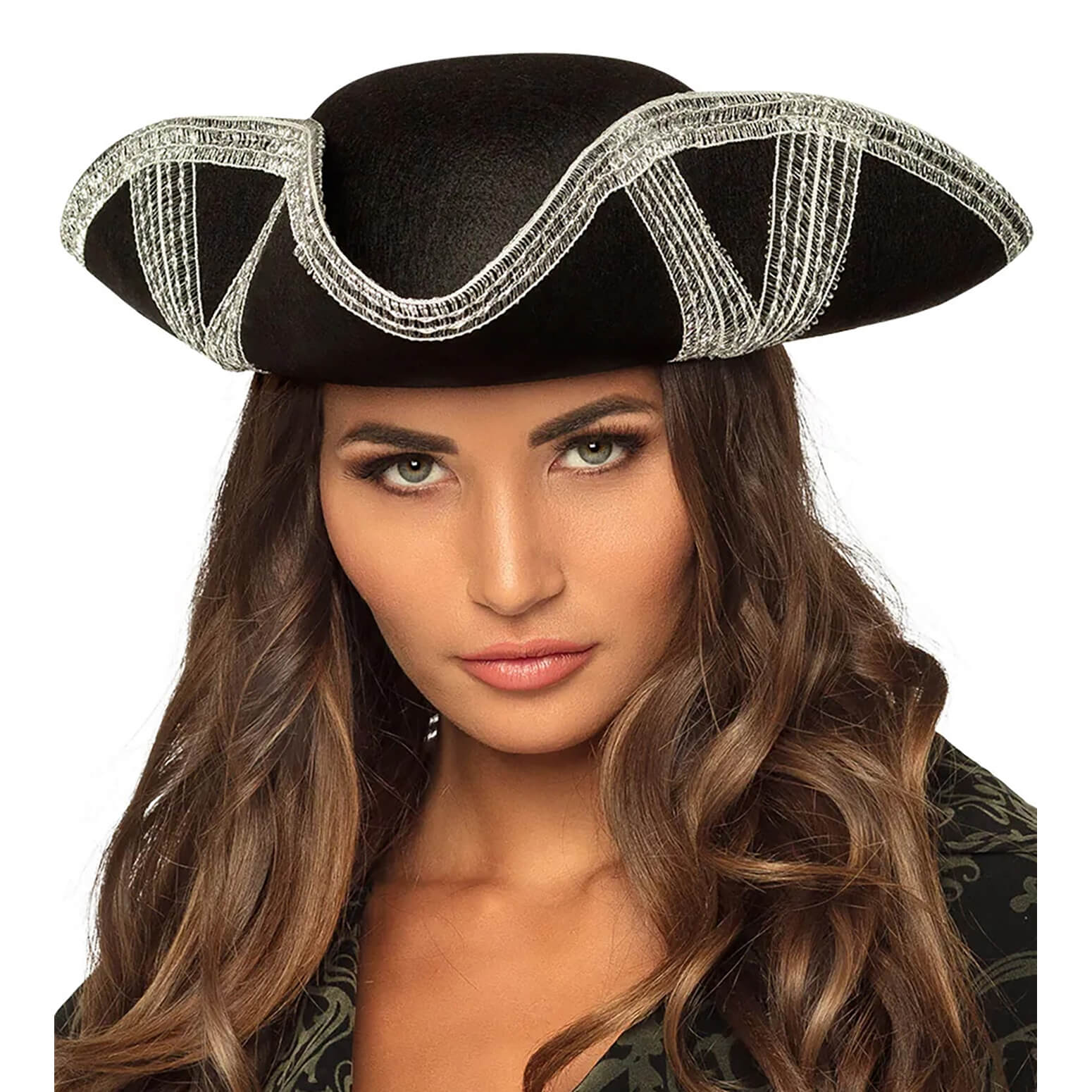 Edelleute / Piraten Dreispitzhut mit Bordüre ROYAL FORTUNE schwarz-silber