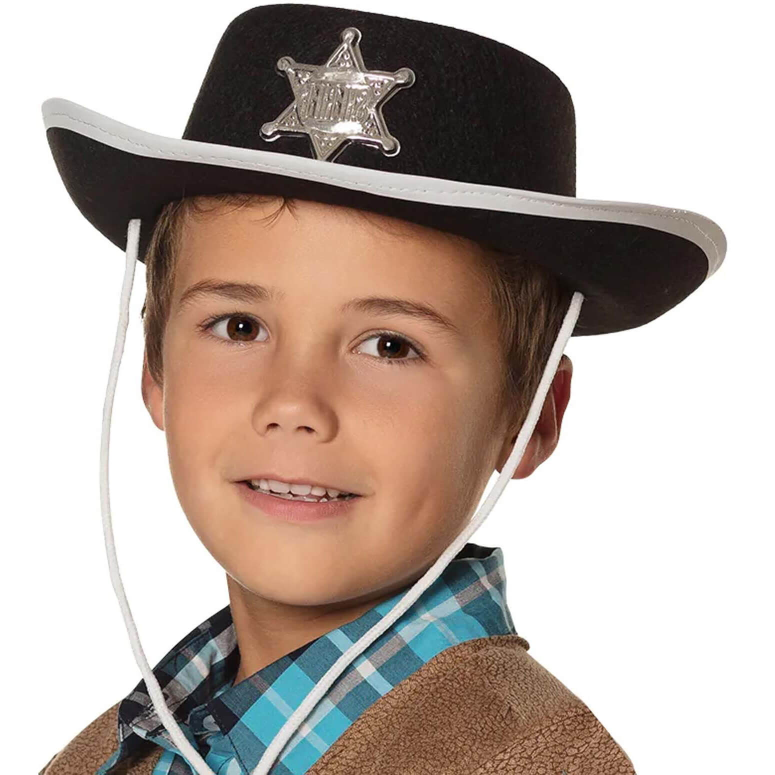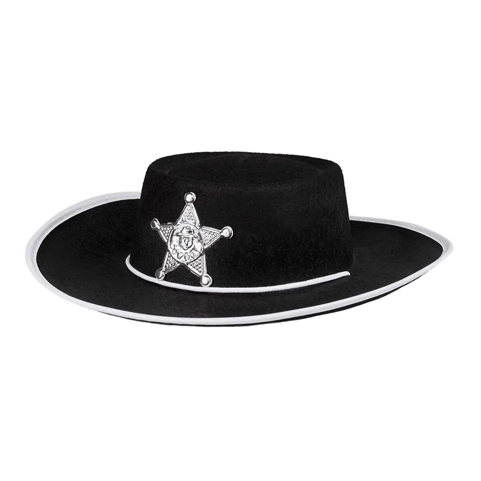 Cowboy Western Sheriff Cowboyhut für Kinder mit Stern Filzoptik SHERIFF KID schwarz-silber