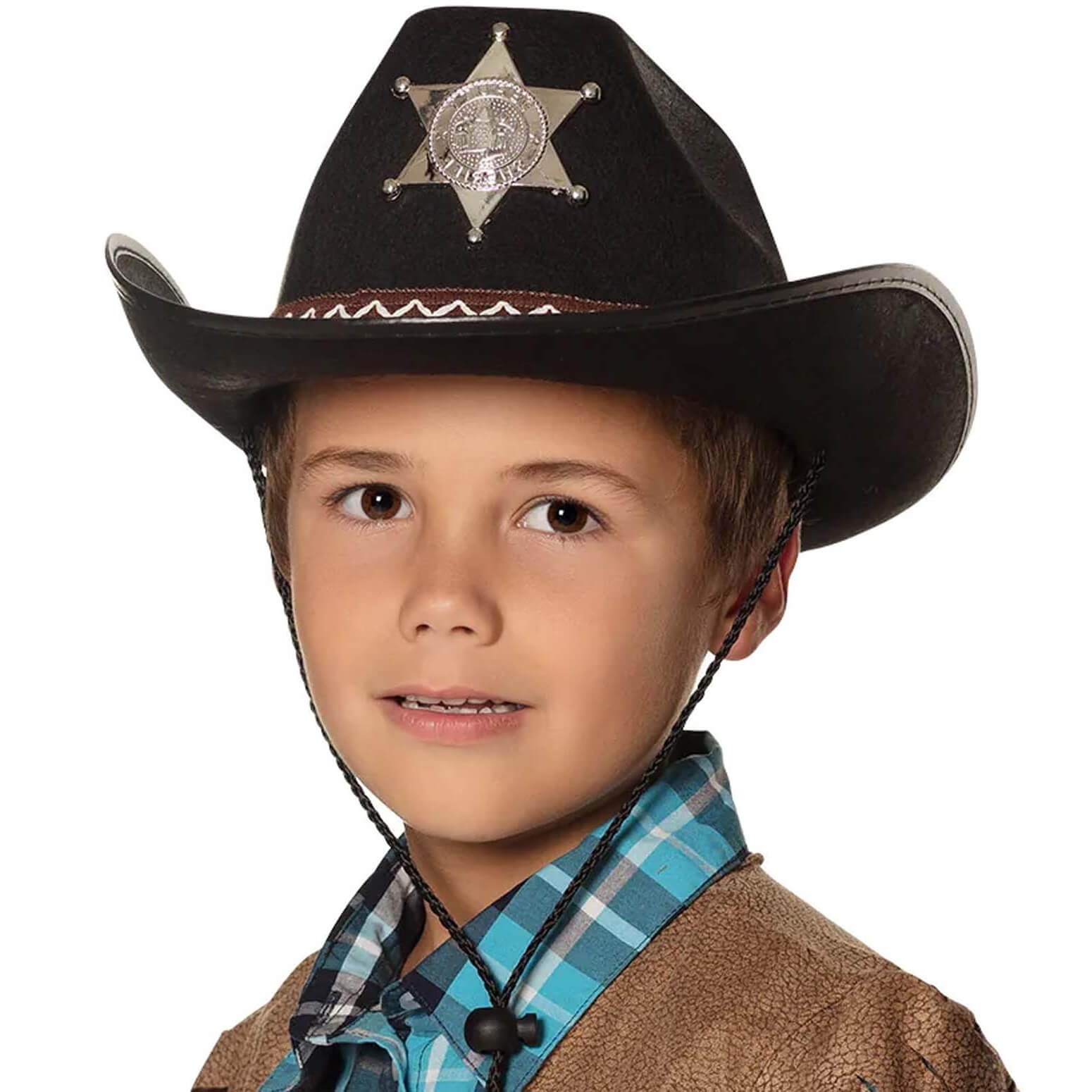 Cowboy Western Sheriff Cowboyhut für Kinder mit Stern Filzoptik SHERIFF KID DELUXE schwarz-braun