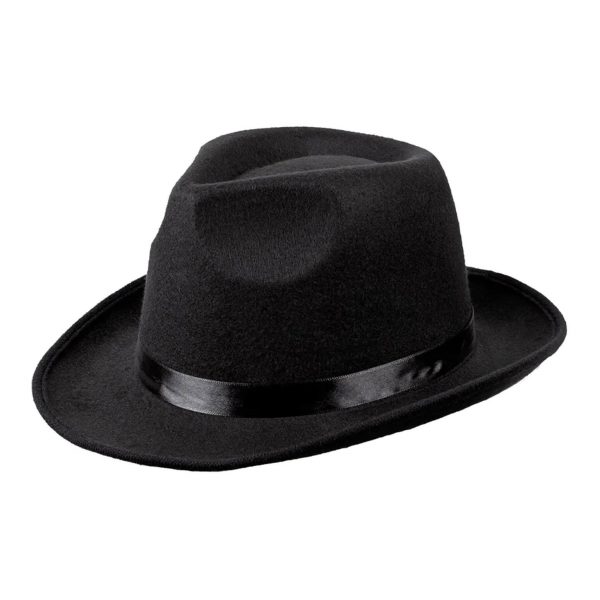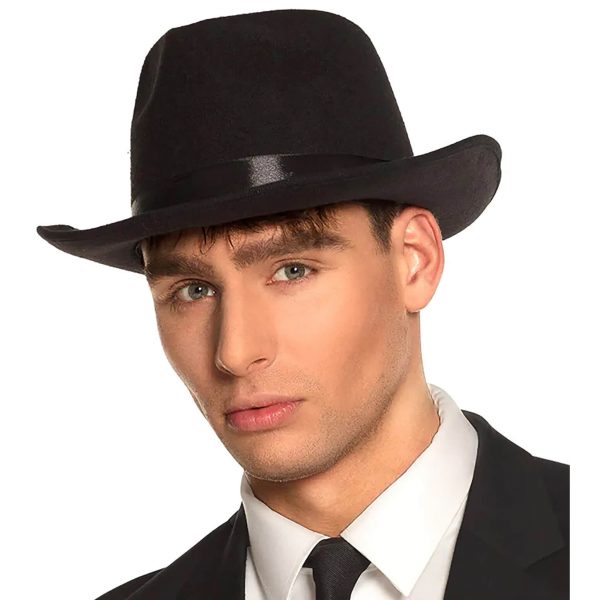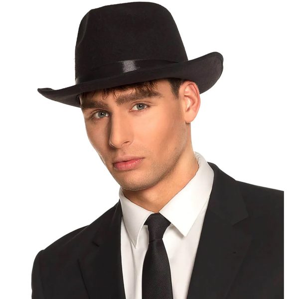 20er Jahre/50er Jahre Fedorahut breite Krempe aus Filz größenflexibel DWIGHT schwarz – (ARTIKEL/REFERNZ: 8712026042125/BO04212 – Kategorie/Suche: Gangsterhut – Hersteller: Boland BV)