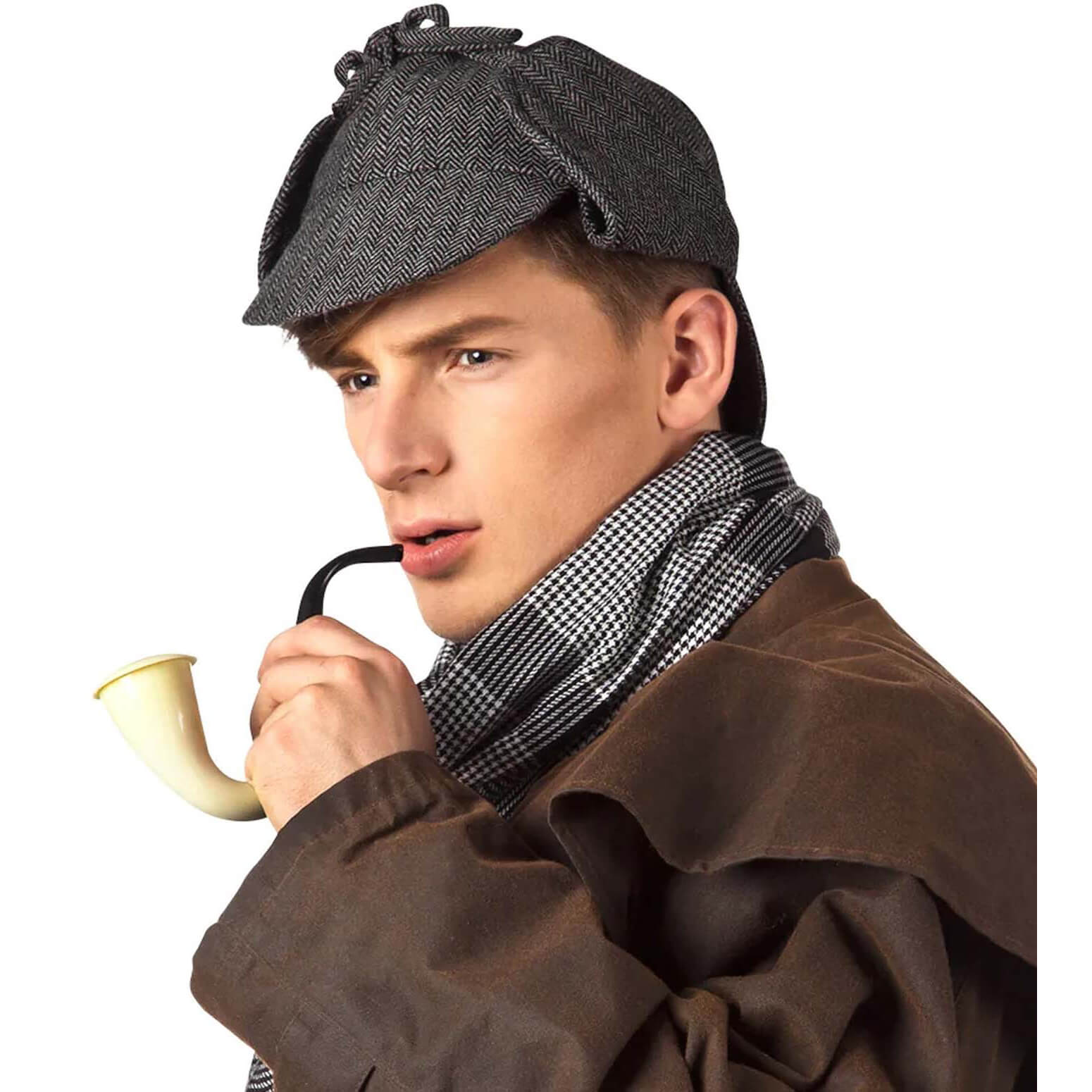Privatdetektiv Mütze in Fischgrätmuster mit Ohrenklappen zum Binden dunkelgrau – (ARTIKEL/REFERNZ: 8712026042408/BO04240 – Kategorie/Suche: Sherlock Holmes – Hersteller: Boland BV)