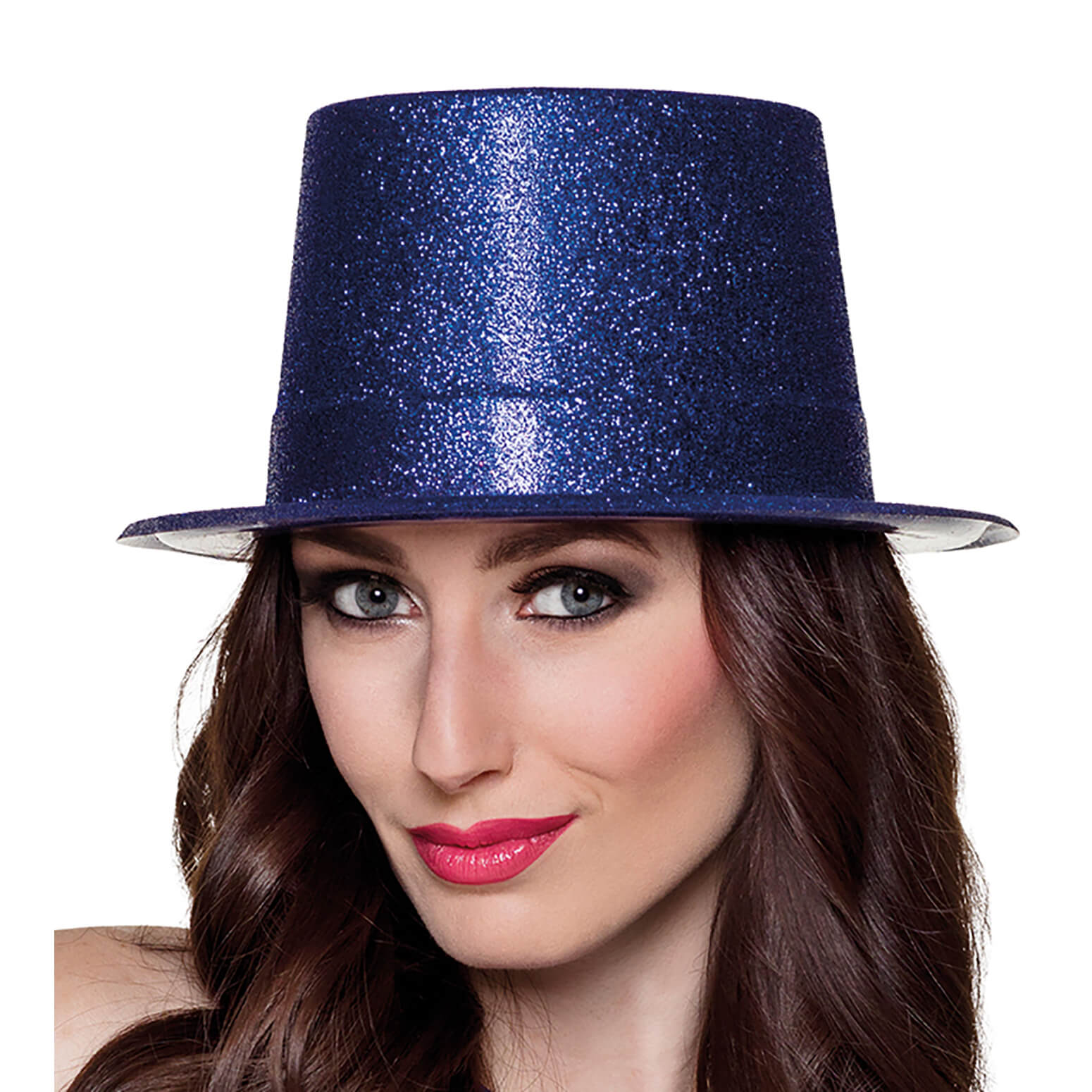 Dekohut Zylinder Plastik mit Glitzer einfarbig blau