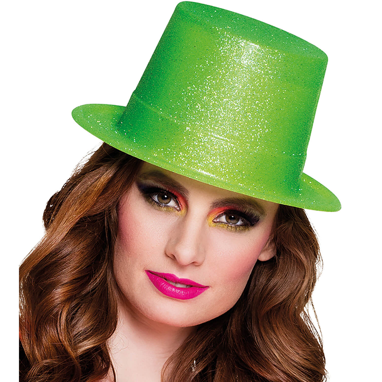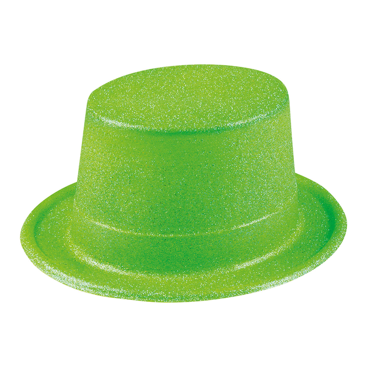 Dekohut Zylinder Plastik mit Glitzer einfarbig neongrün – (ARTIKEL/REFERNZ: 8712026042576/BO04257 – Kategorie/Suche: – Hersteller: Boland BV)