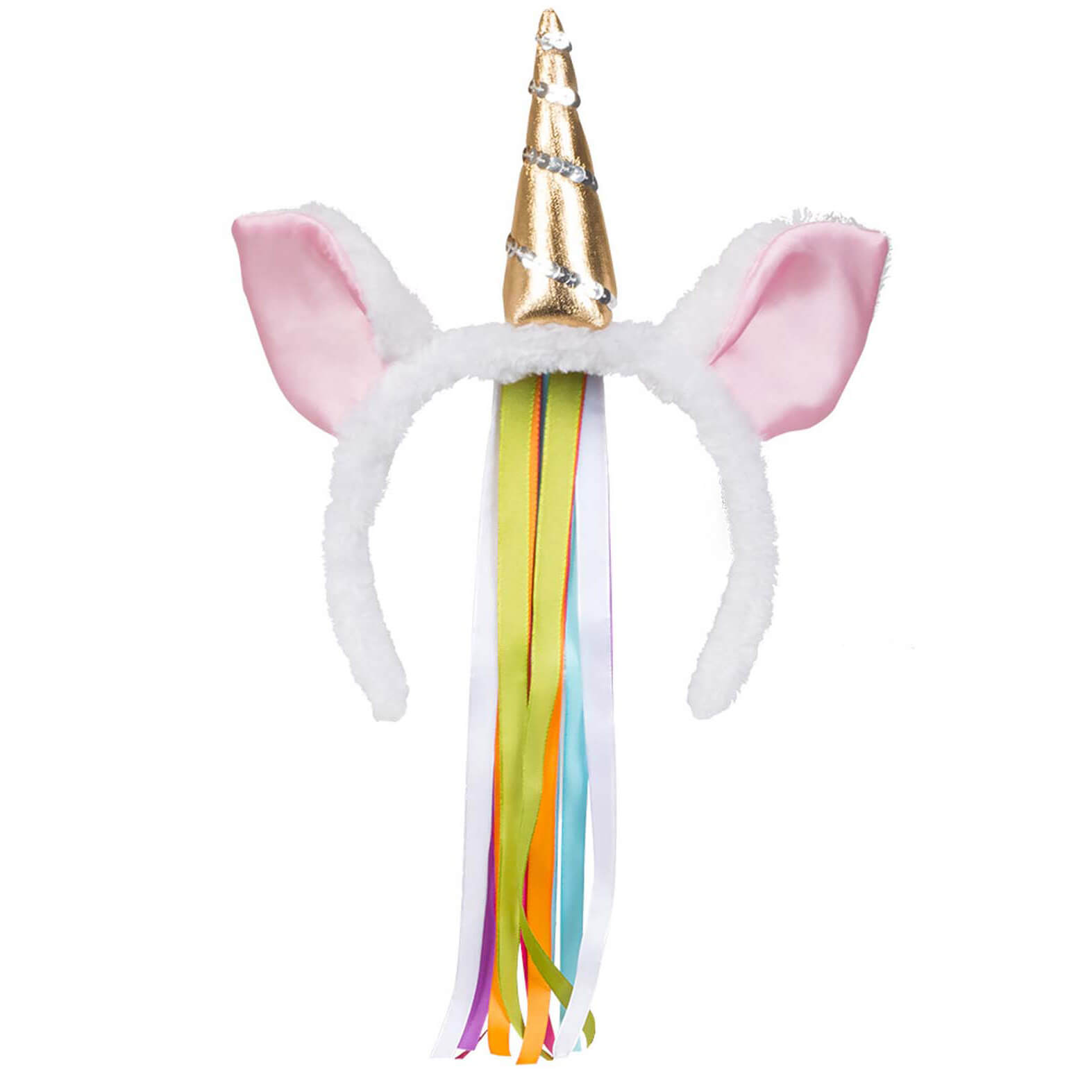 Pferd Einhorn Haarreif mit Horn und Ohren mit Bändern regenbogen-gold – (ARTIKEL/REFERNZ: 8712026042897/BO04289 – Kategorie/Suche: – Hersteller: Boland BV)