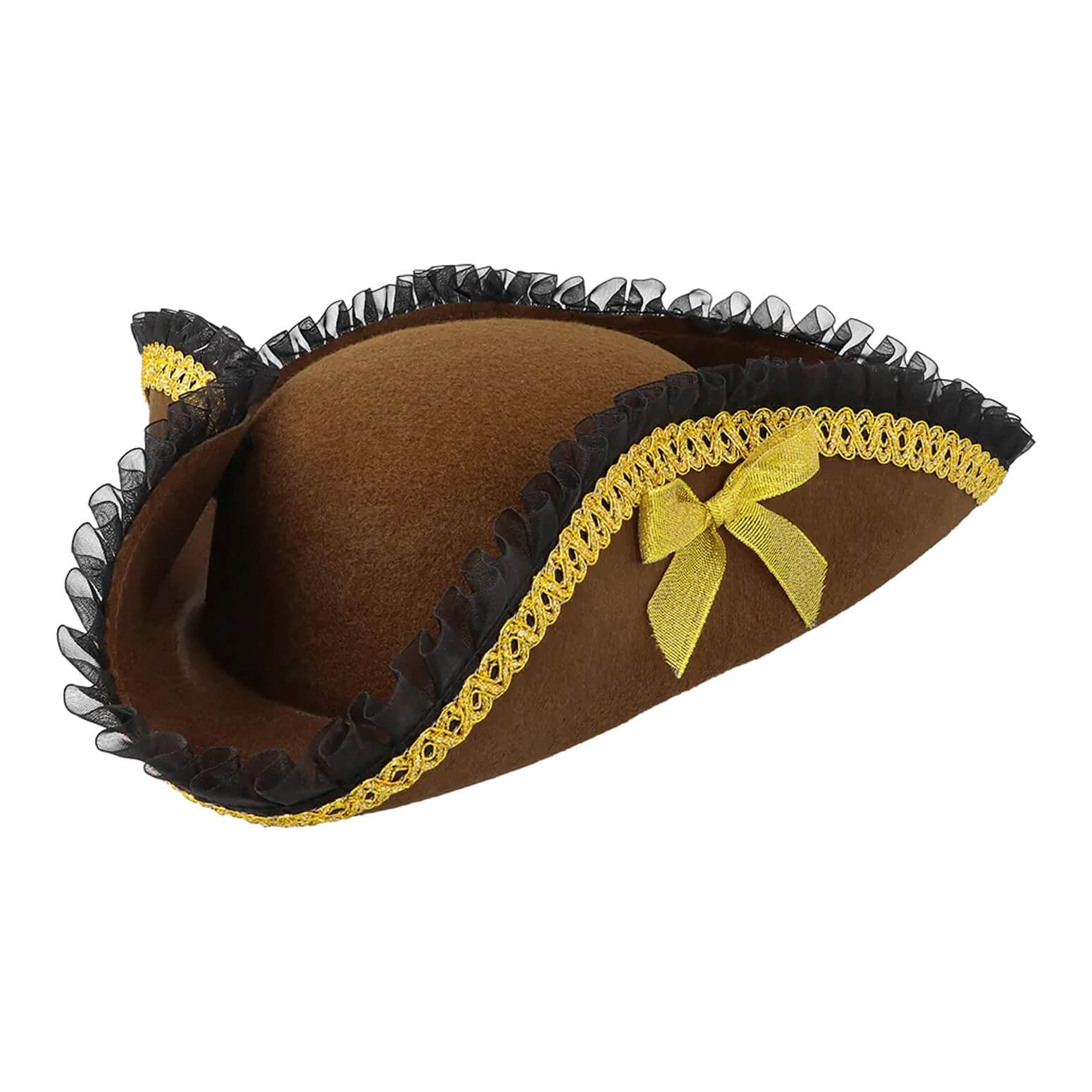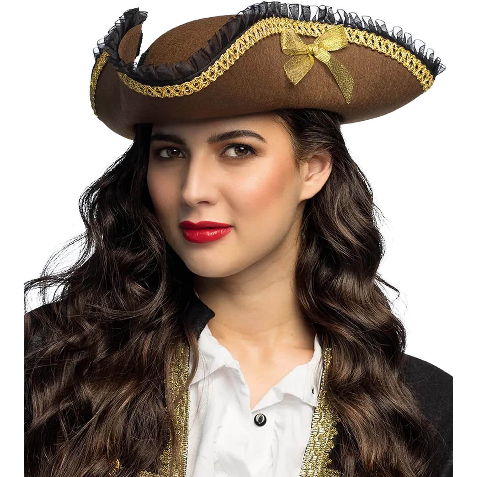 Edeldame/Piratin Dreispitzhut mit Tüll und Bordüren CORAL braun-gold – (ARTIKEL/REFERNZ: 8712026043474/BO04347 – Kategorie/Suche: – Hersteller: Boland BV)