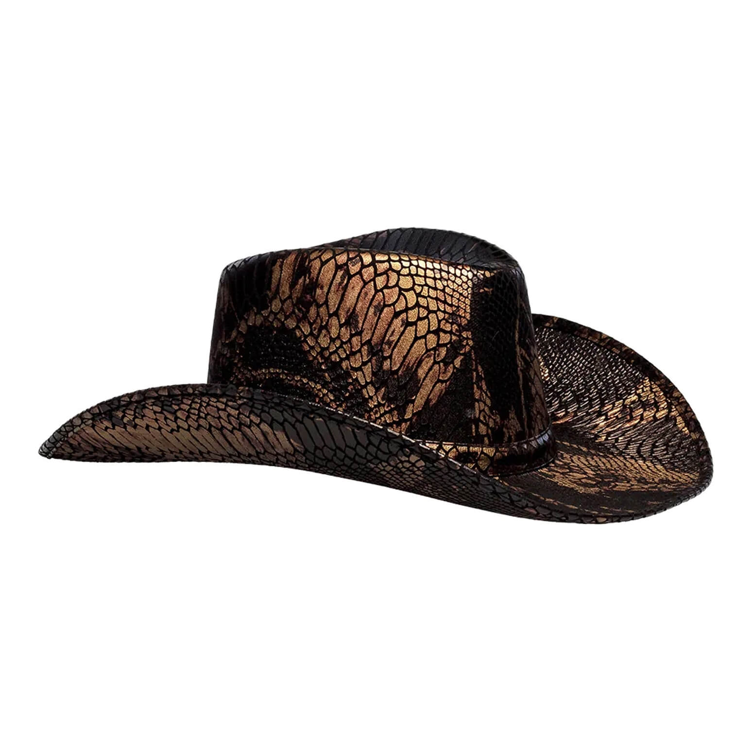 Cowgirl Cowboy / Festival Cowboyhut mit Schlagnemuster bedruckt COBRA metallic schwarz-gold